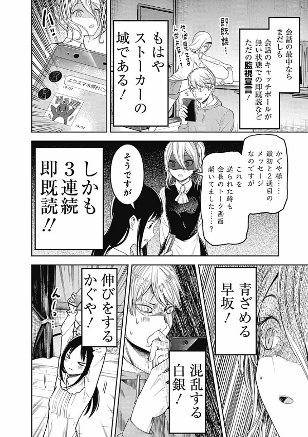 「恋愛は告白した方が負けなのである!」 エリートの集う秀知院学園生徒会で出会った会長・白銀御行と副会長・四宮かぐや…。この両想いであるはずの天才2人が、互いに相手に惚れさせ、相手から告白させようと日常の全てで権謀術数の限りを尽くす、新感覚のラブコメ!! 第11巻では、様々な姿を見せる早坂の本音が爆発!? MC御行vs早坂のラップバトルが勃発!! そして、スマホを手にしたかぐや様と白銀の距離は縮まる…かに見えたが、三者面談における進路調査で、白銀は驚きの決断をする事に!!