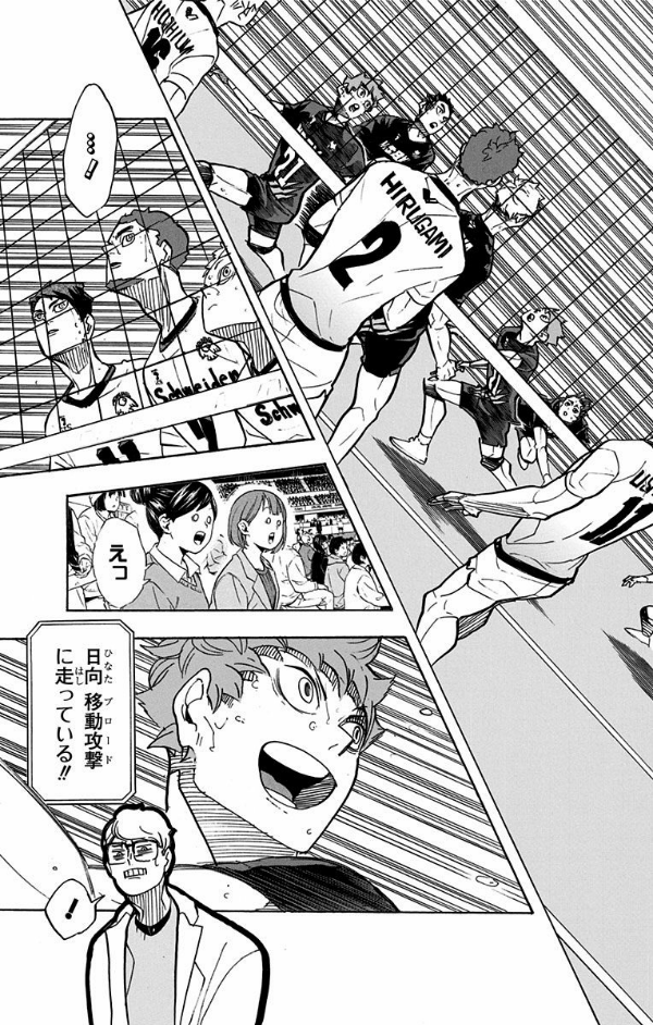Vリーグで再会を果たした日向と影山。BJとADのハイレベルな応酬の中でも、日向は多彩なプレーで存在感を見せつける!! 再び敵となって現れた日向を前に、昂る影山の脳裏に浮かんだものは──…!!