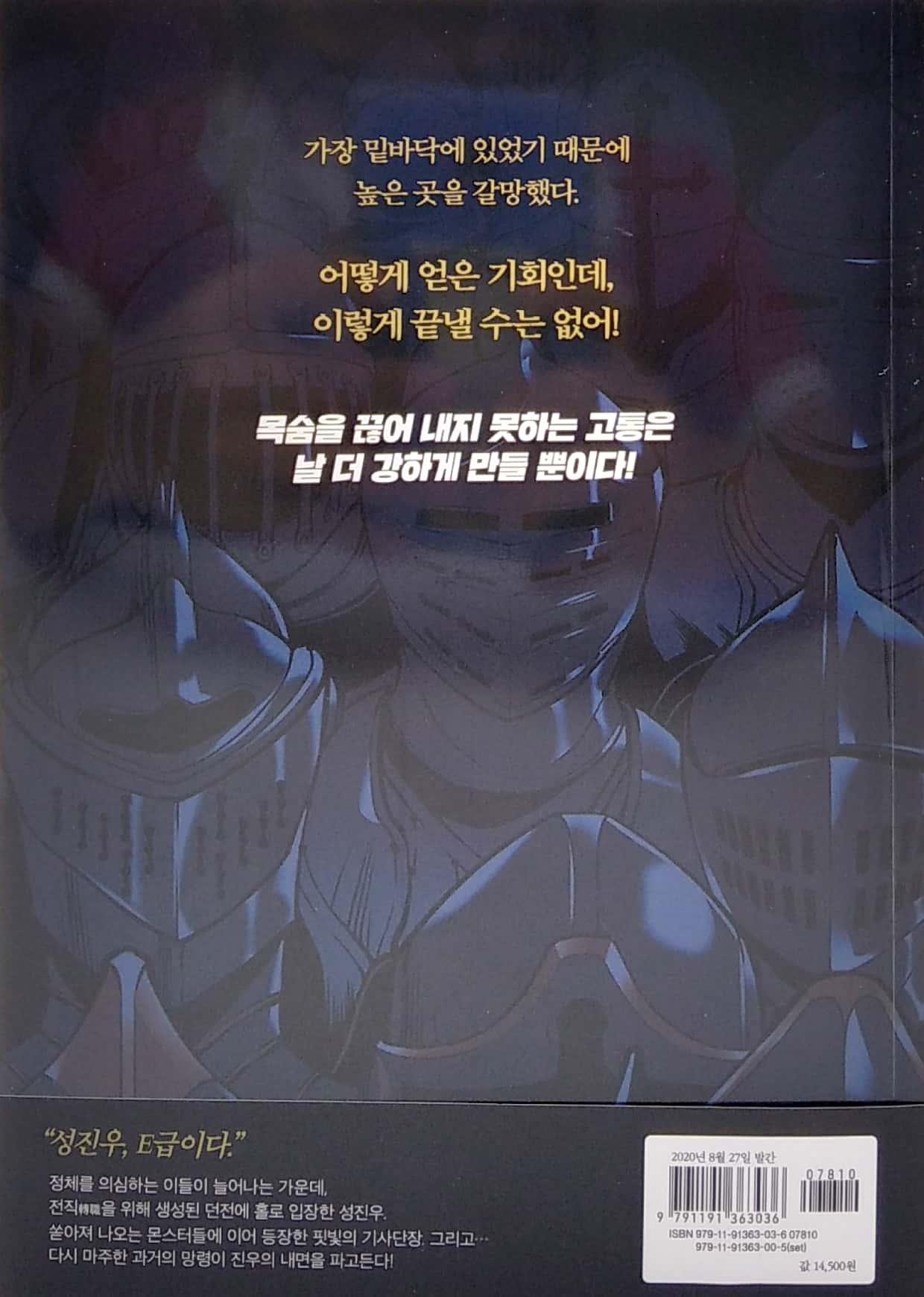 단행본만을 위한 본문 전면 재연출을 거쳤으며, 넉넉한 판형으로 ‘나혼렙’ 액션신의 쾌감을 100% 만끽할 수 있다. 한 화 읽고 나면 정신을 차릴 수 없이 빠져드는 레이드 액션의 진수! 돈 없고, 빽 없고, 능력 없는 사상 최약체 E급 헌터, 성진우의 화려한 부활, 그리고 레벨업이 시작된다! “[접속]하여 레벨업하겠는가?”