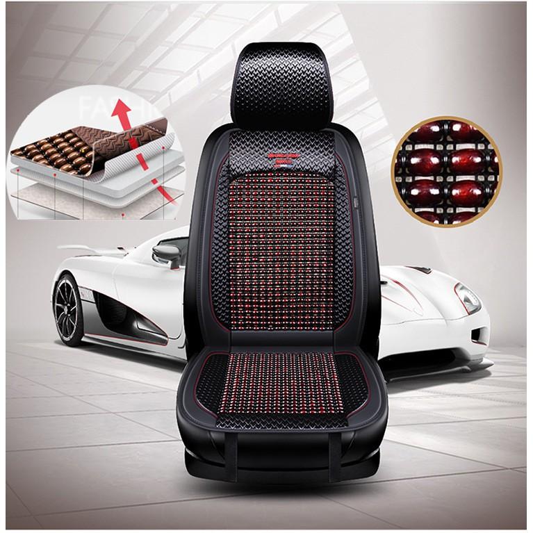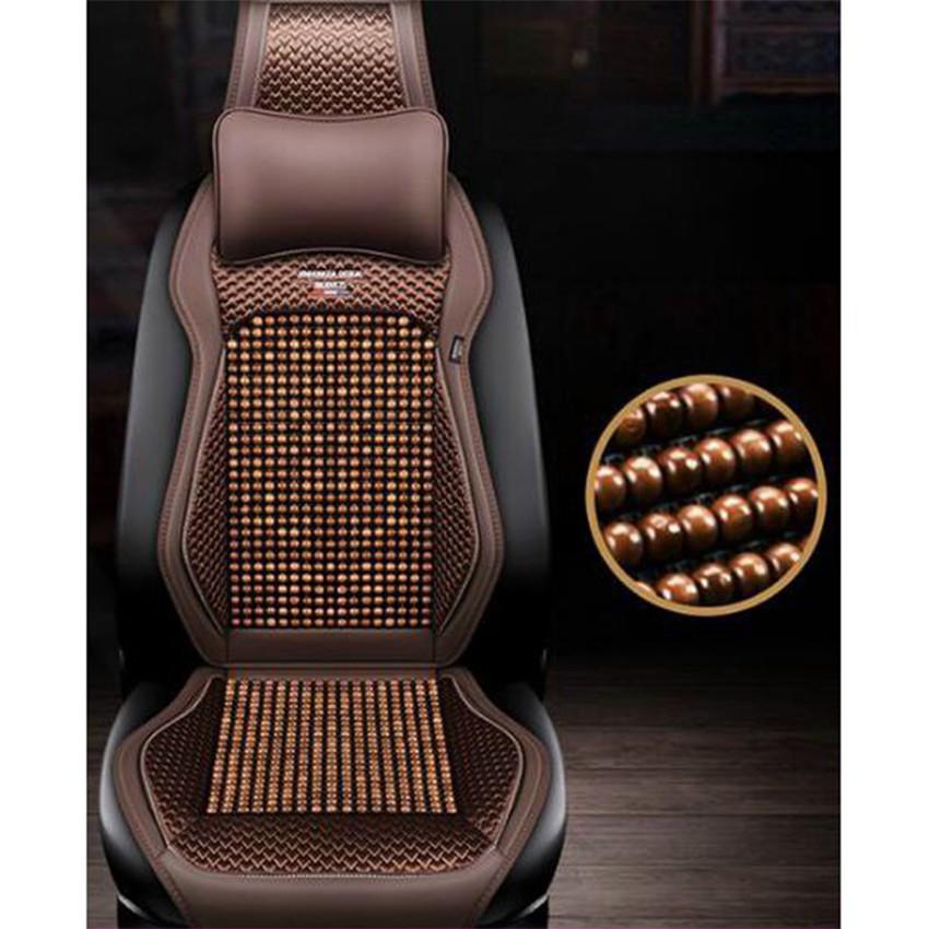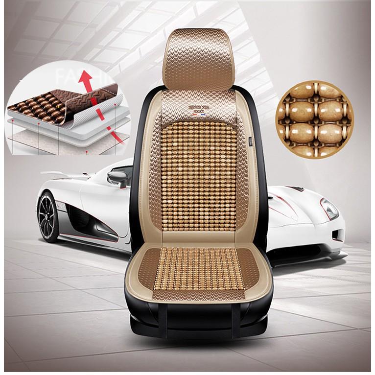 Bộ áo ghế ô tô lót liền hạt gỗ da cao cấp phủ 1 ghế trước, có đan hạt gỗ chống nóng, massage lưng
