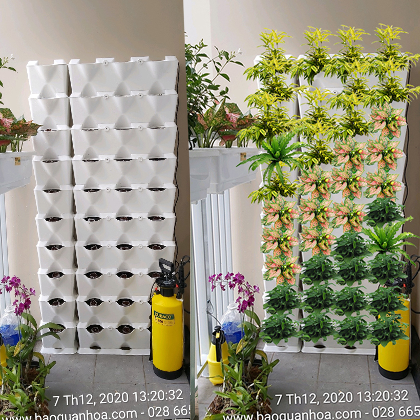 CHẬU TRỒNG RAU SẠCH TẠI NHÀ (1M2 DẠNG ĐỨNG) LÀ CHẬU NHỰA MODULE TRỒNG RAU ÁP TƯỜNG NHẬP KHẨU CHÂU ÂU BẢO HÀNH 5 NĂM (GỒM 8 MODULE LÀ 24 HỐC RAU và CHƯA GỒM