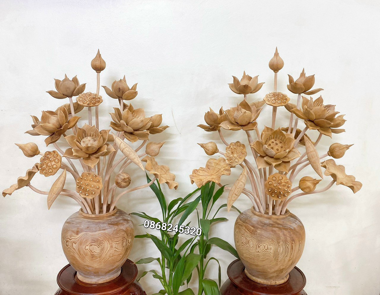 Bình Hoa Sen 21 Cành Gỗ Ngọc Am Thơm Nức Đẹp Giá Xưởng| Xưởng Tượng Gỗ Độc Đáo - 0938410333