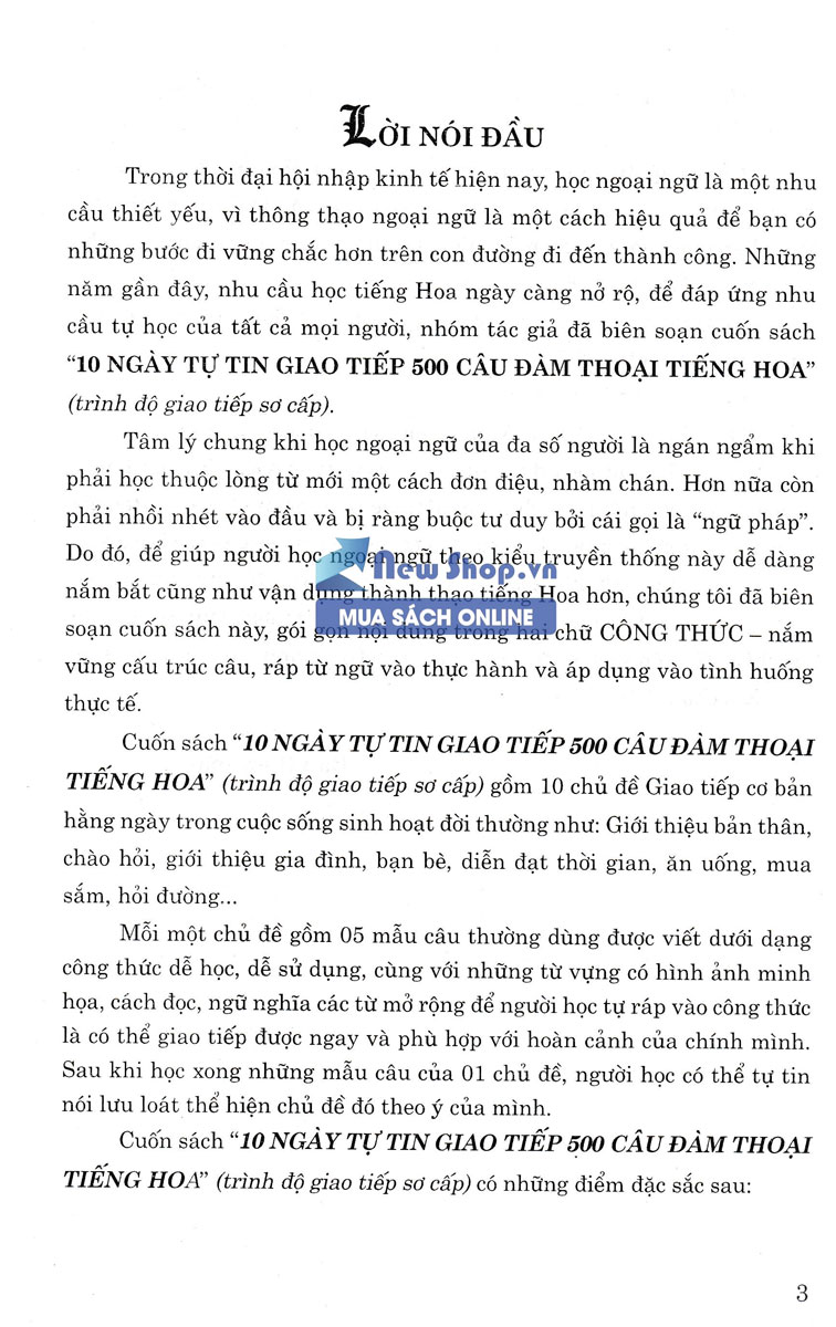 10 Ngày Tự Tin Giao Tiếp 500 Câu Đàm Thoại Tiếng Hoa Trong thời đại hội nhập kinh tế hiện nay, học ngoại ngữ là một nhu cầu thiết yếu, vì thông thạo ngoại ngữ
