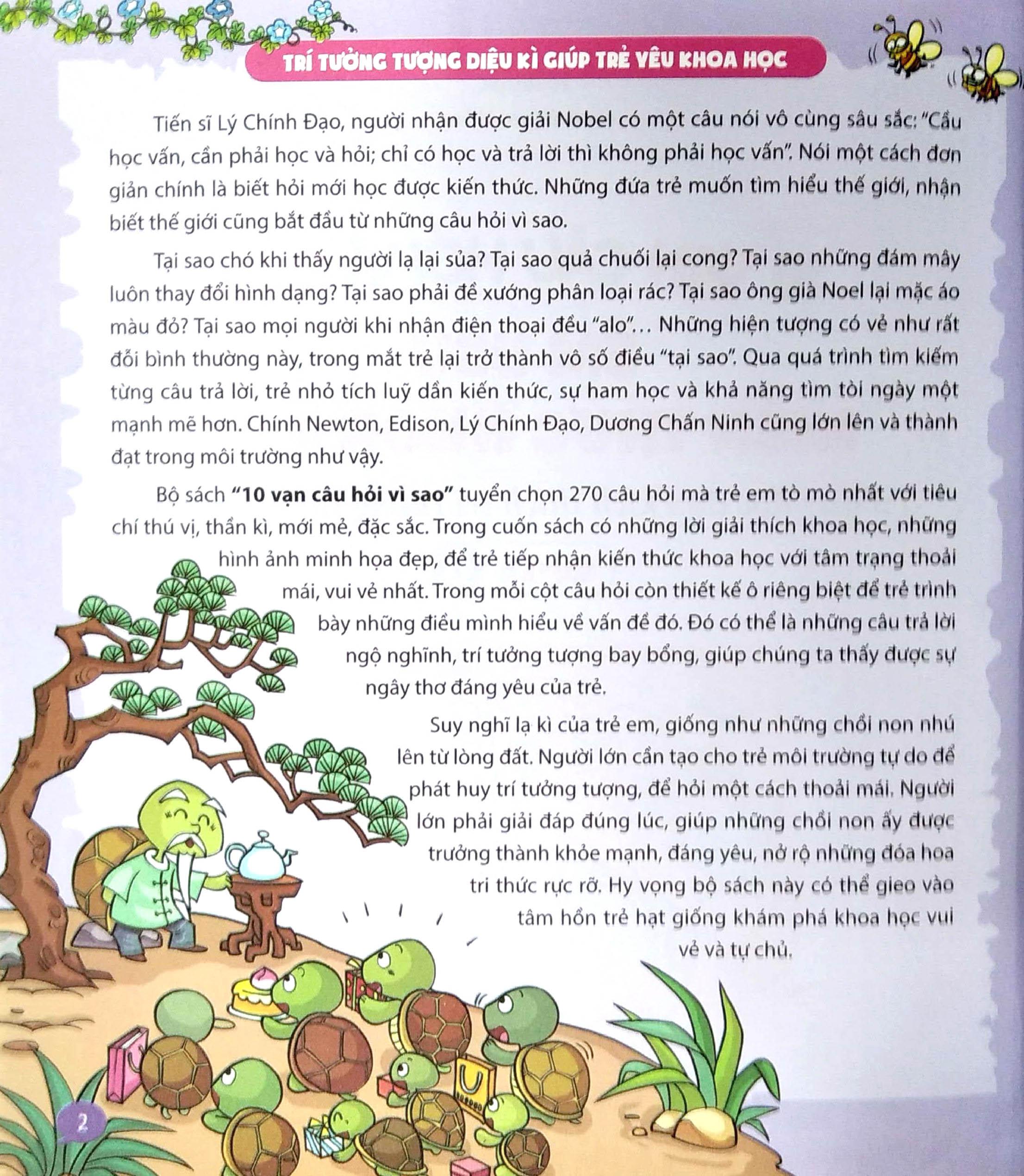 Mua tại Tiktok10 Vạn Câu Hỏi Vì Sao - Quyển 6: Em Yêu Kiến Thức Khoa Học Bộ sách tuyển chọn câu hỏi mà trẻ em tò mò nhất với tiêu trí thú vị, thần kỳ, mới mẻ, đặc sắc. Trong cuốn sách có lời giải thích khoa học , những hình ảnh minh họa đẹp, để trẻ tiếp nhận kiến thức khoa học với tâm trạng thoải mái, vui vẻ. Trong mỗi cột câu hỏi còn thiết kế ô riêng biệt để trẻ trình bày những điều m.ình hiểu biết về vấn đề đó . Đó có thể là những câu trả lời nghộ nghĩnh , trí tưởng tượng bay bổng , giúp chúng ta thấy đưuọc sự ngây thơ đáng yêu của trẻ .