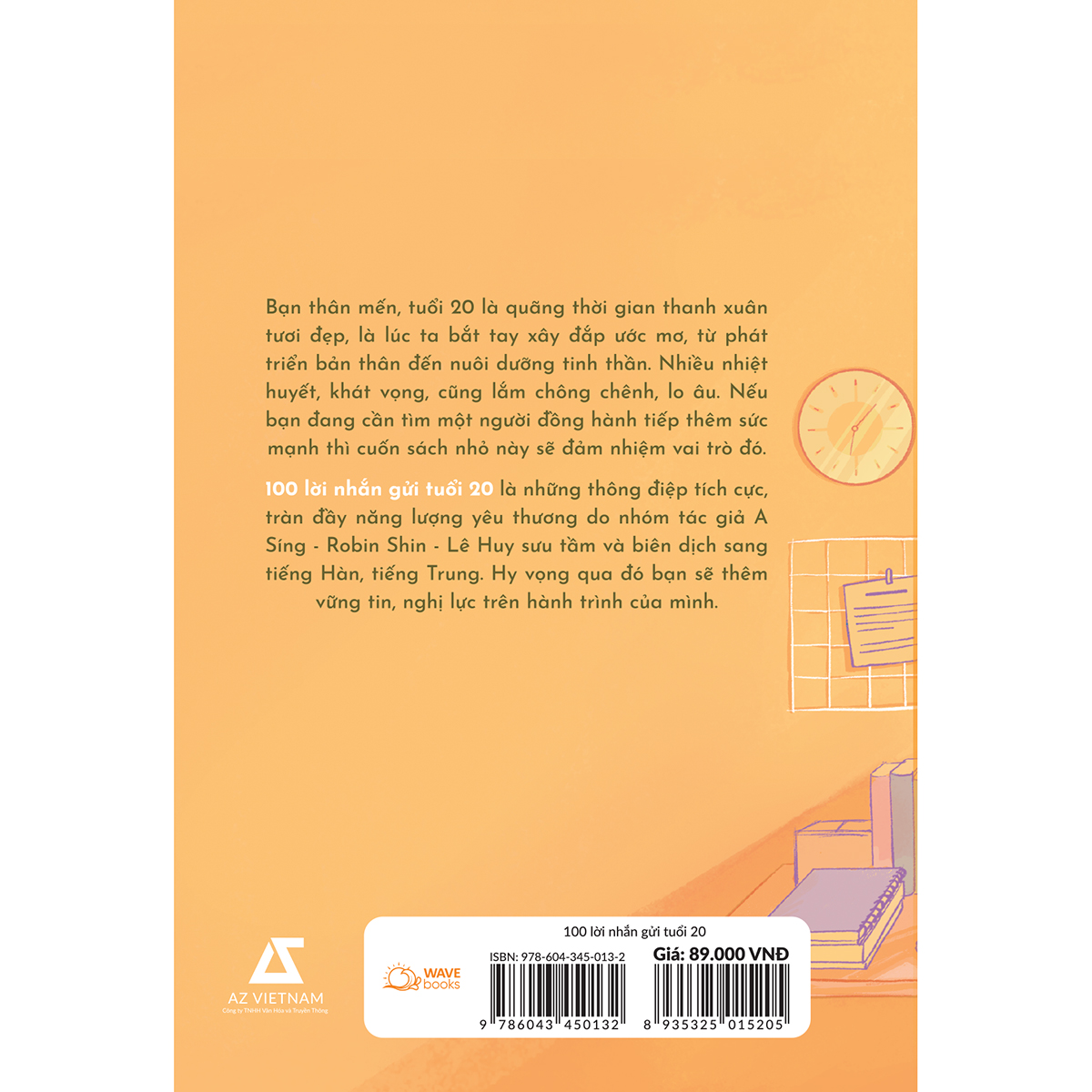 100 lời nhắn gửi tuổi 20 với 100 thông điệp tiếp thêm động lực để bạn vượt qua những chướng ngại đồng thời tận hưởng trọn vẹn niềm vui của ngày tháng tuổi trẻ. Mong bạn sẽ sống tuổi 20 thật rực rỡ để khi 30, 40 tuổi nhìn lại, bạn sẽ không phải nói hai từ “giá như”.