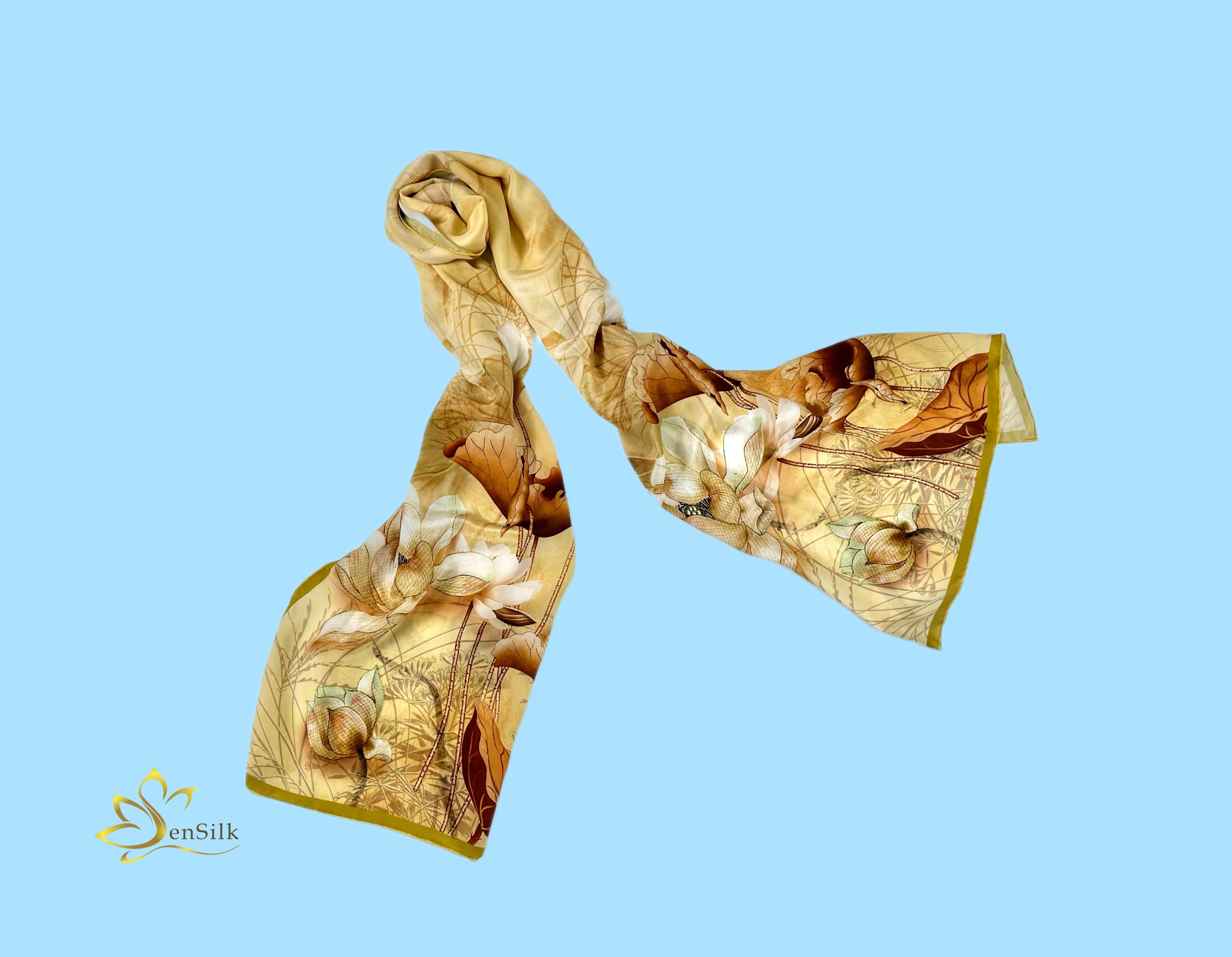 SenSilk – Lụa Tơ Tằm Thuần Việt kết hợp hài hoà giữa Lụa tơ tằm Bảo Lộc cao cấp với công nghệ in kỹ thuật số hiện đại tạo nên những chiếc khăn lụa in kỹ