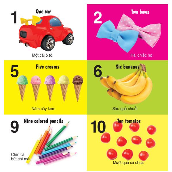Điểm cộng của bộ sách này còn là yếu tố song ngữ Anh - Việt hấp dẫn, giới thiệu những từ vựng, hình ảnh, kiến thức cơ bản, gần gũi đầu tiên dành cho bé.