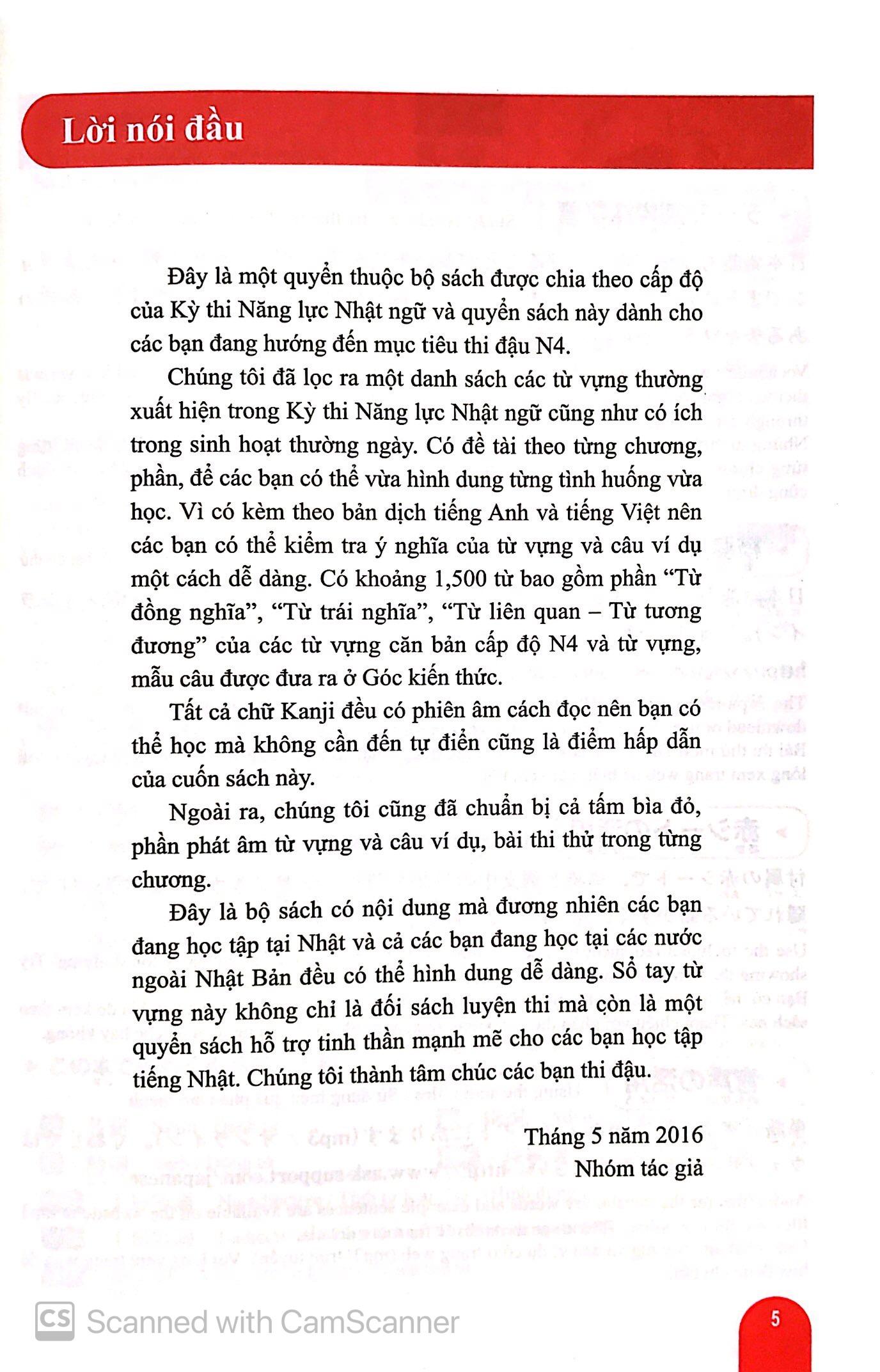 N4 - 1500 Từ Vựng Cần Thiết Cho Kỳ Thi Năng Lực Nhật Ngữ Bộ sách học từ vựng cấp độ N5 ~ N1 dành cho Kỳ thi Năng lực Nhật ngữ. Bộ sách gồm