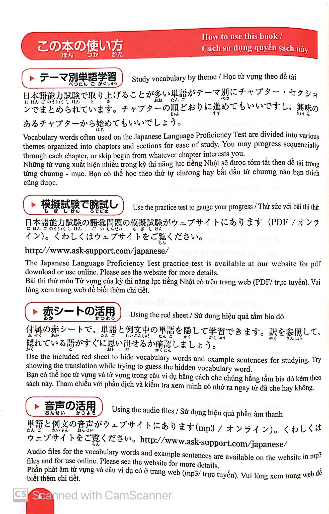 Bộ sách học từ vựng cấp độ N5 ~ N1 dành cho Kỳ thi Năng lực Nhật ngữ. Bộ sách gồm 5 cuốn: N1, N2, N3, N4, N5, tập hợp các từ vựng xuất hiện