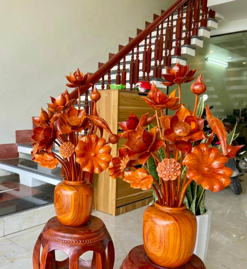 _ Bình hoa sen trang trí phòng thờ ,phòng khách được làm bằng chất liệu ,gỗ hương đỏ và gỗ ngọc am tự nhiên 100% _ Kt bình cắm hoa ,gỗ hương đỏ là cao