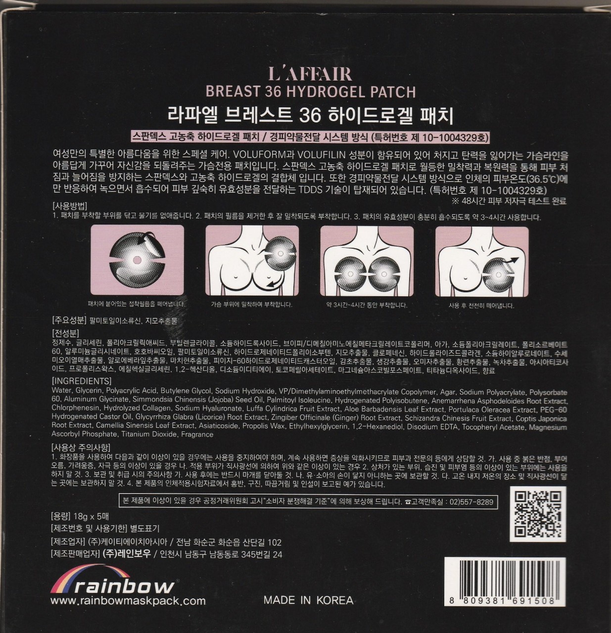 ✨2 hộp 10 cặp miếng dán chăm sóc da ngực, săn chắc, chống chảy xệ Rainbow L'affair Breast 36 Hydrogel Patch 18g