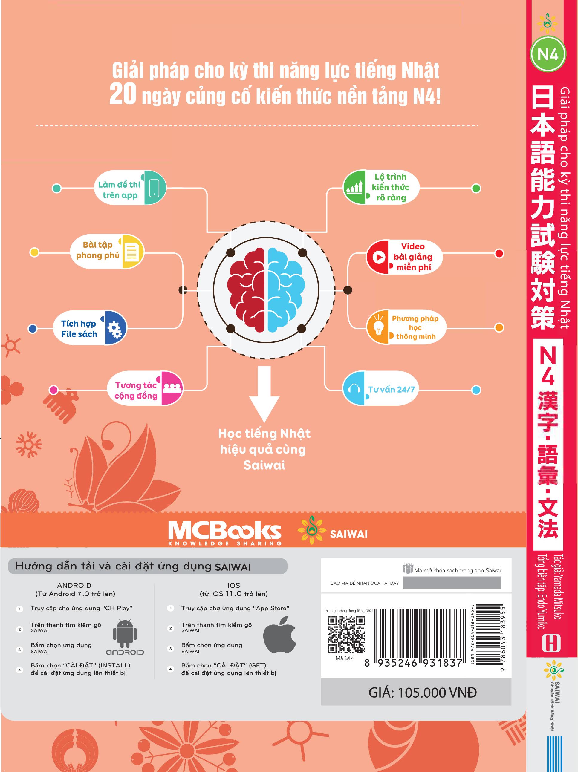 Giải Pháp Cho Kỳ Thi Năng Lực Tiếng Nhật - 20 Ngày Củng Cố Kiến Thức Nền Tảng N4 Nhà xuất bản : Nhà Xuất Bản Hồng Đức. Công ty phát hành : MCBooks. Tác