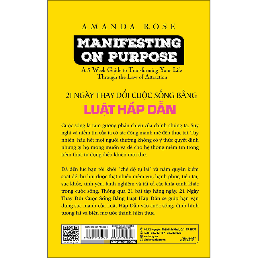 Mua tại TiktokCuộc sống là tấm gương phản chiếu của chính chúng ta. Suy nghĩ và niềm tin của ta có tác động mạnh mẽ đến thực tại. Tuy nhiên, hầu hết mọi người thường không có ý thức quyết định những gì họ mong muốn và để cho hệ thống niềm tin trong tiềm thức tự động điều khiển mọi thứ. Đã đến lúc bạn rời khỏi “chế độ tự lái” và nắm quyền kiểm soát để thu hút được thật nhiều niềm vui, hạnh phúc, tiền tài, sức khỏe, tình yêu, kinh nghiệm và tất cả các khía cạnh khác trong cuộc sống. Thông qua 21 bài tập hằng ngày, 21 Ngày Thay Đổi Cuộc Sống Bằng Luật Hấp Dẫn sẽ giúp bạn vận dụng sức mạnh của Luật Hấp Dẫn vào cuộc sống, định hình tương lai và biến mơ ước thành hiện thực .