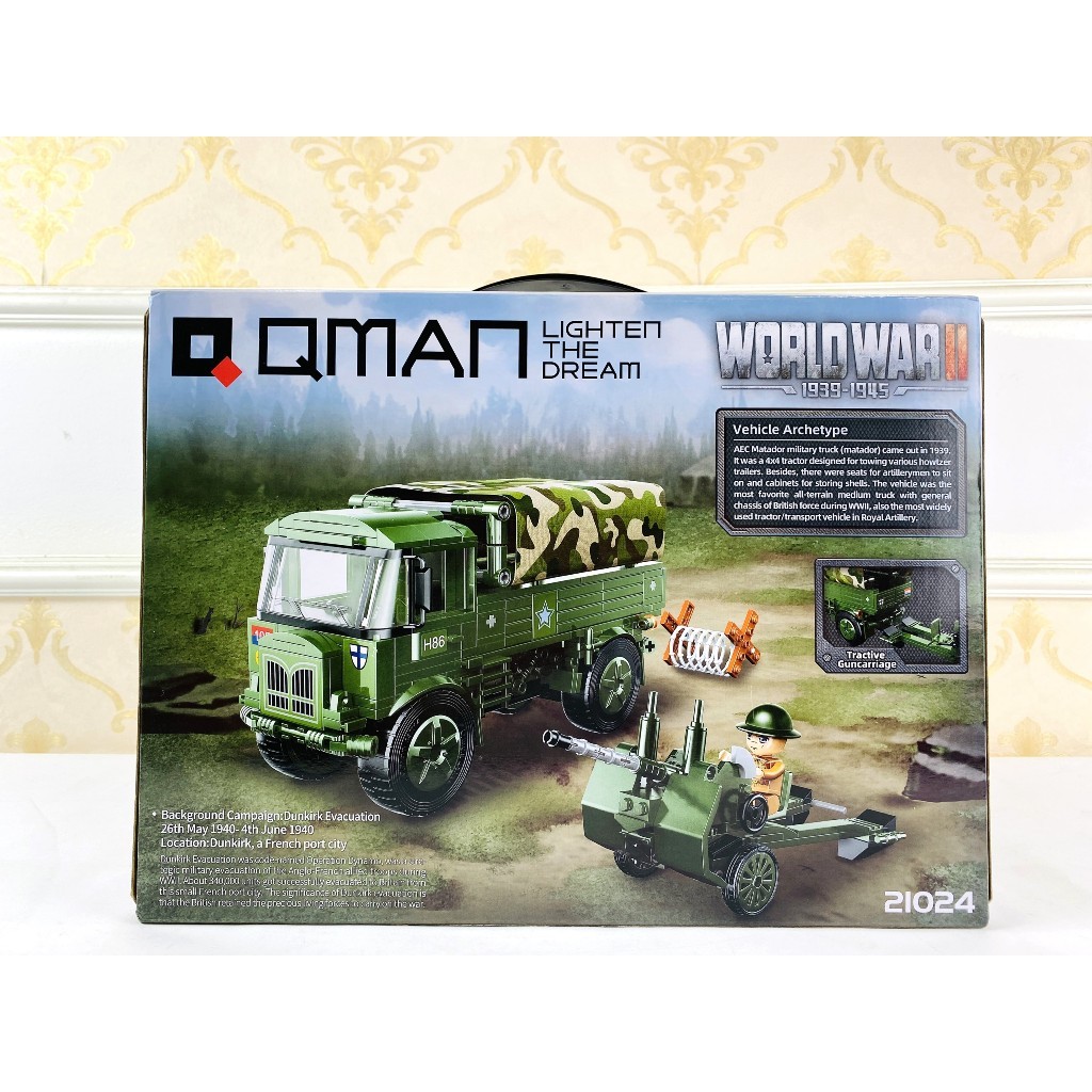 Thông tin sản phẩm: 21024 Bộ đồ chơi lắp ráp mô hình người chiến sĩ dũng cảm Dunkirk - QMAN - Kích thước: 37x27.5x6.5cm - Chất liệu: Nhựa ABS - Thương