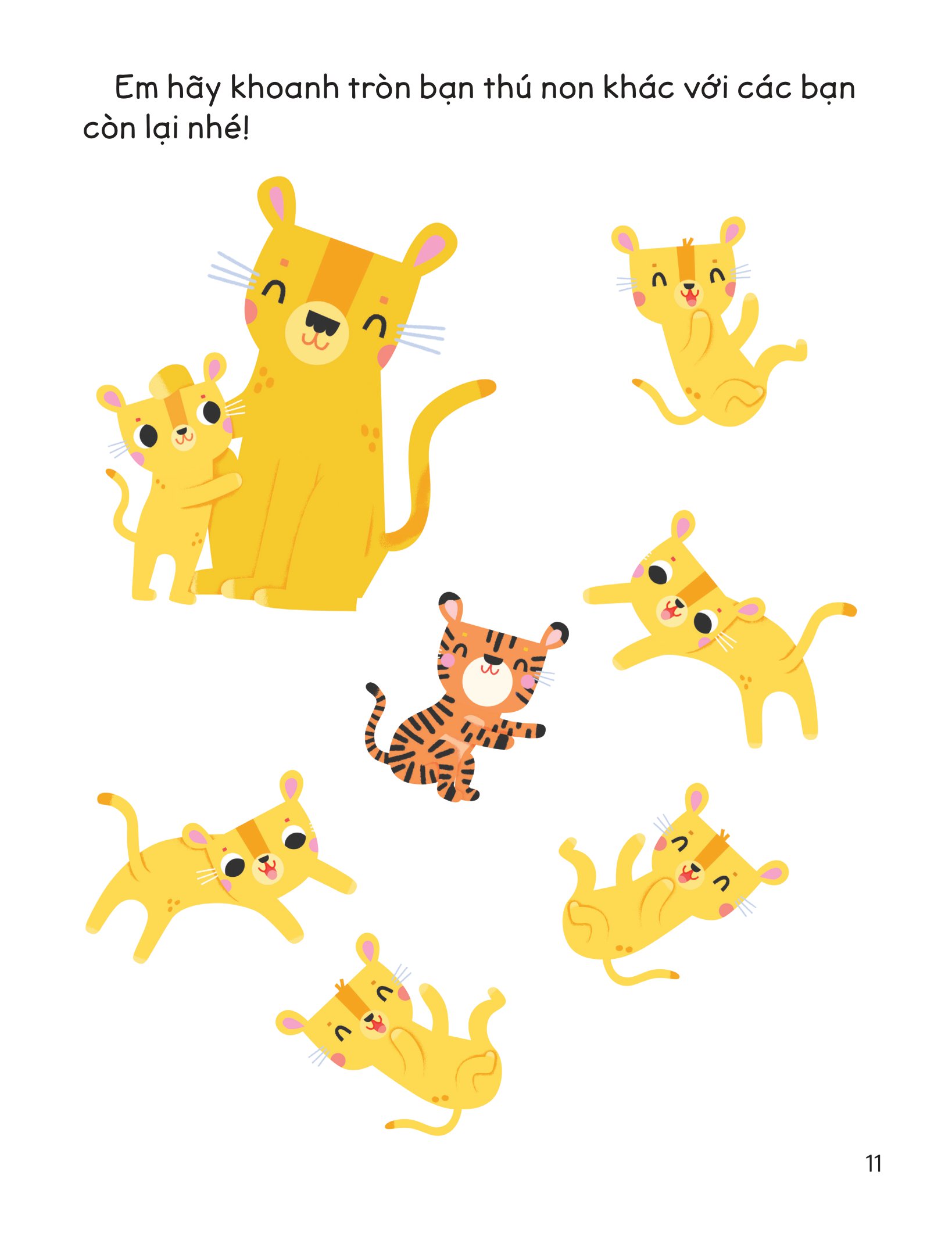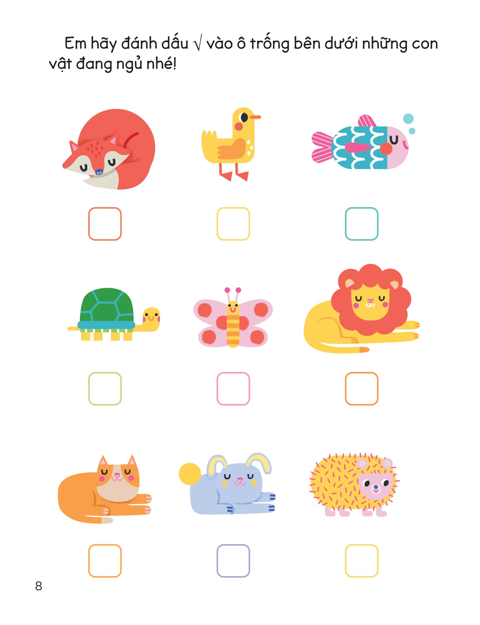 Đồng thời, các hoạt động trong sách cũng kích thích trí não của em, giúp em phát triển nhận thức thị giác, kỹ năng vận động tinh và sự phối hợp tay-mắt đấy.