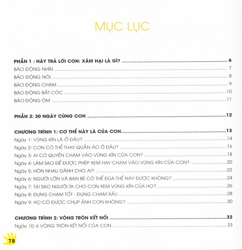 Được viết bằng sự tận tâm của một ông bố thương con - nhà văn Hoàng Anh Tú - anh cựu Chánh văn báo Hoa Học Trò, cùng những hình ảnh minh họa cực kỳ dễ hiểu, nội dung cuốn sách không phải là các kiến thức học thuật khô khan. Thay vào đó, 30 ngày cùng con học hiểu về chống xâm hại là một hành trình tìm hiểu và trải qua rất nhiều tình huống cụ thể, thiết thực và vô cùng hữu ích. Trẻ được hình dung và tập phản ứng trước những tình huống nguy hiểm như làm thế nào để nhận diện kẻ xấu, nên xử trí thế nào khi bị theo dõi, bị lạc, thậm chí làm thế nào để vượt qua sợ hãi, mặc cảm nếu “lỡ” bị xâm hại…