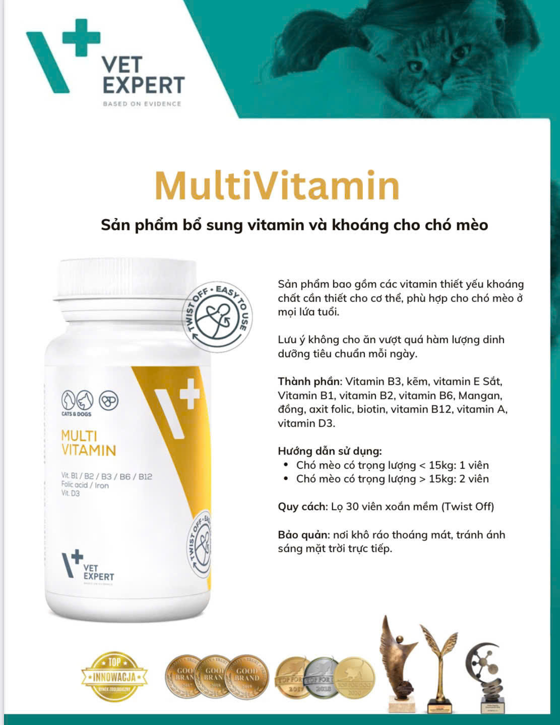 ✨[ 30 viên ] Vet Expert bổ sung vitamin & khoáng , tăng cường miễn dịch, chăm sóc da và lông , xương khớp cho chó và mèo
