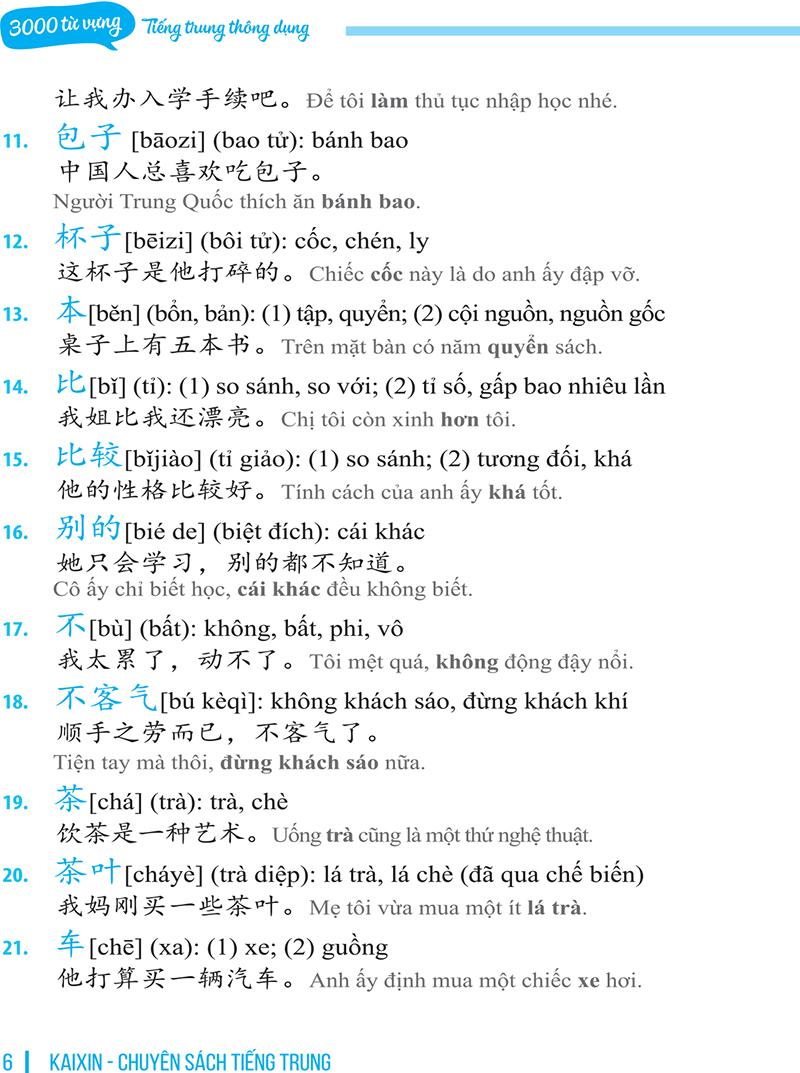 Nhằm đáp ứng nhu cầu học từ vựng của bạn đọc, chúng tôi xin giới thiệu cuốn sách 3000 từ vựng tiếng Trung thông dung tổng hợp những từ vựng tếng Trung được sử dụng với tần suất nhiều nhất trong cuộc sống hàng ngày và trong một số kỳ thi quốc tế thường dung. Ngoài việc liệt kê những từ vựng thông dụng, chúng tôi còn đưa ra cách phát âm, âm Hán Việt, nghĩa cũng như ví dụ minh họa để các bạn có thể hiểu rõ và sử dụng đúng từ vựng vừa học, từ đó giúp các bạn nâng cao vốn từ vựng và nâng cao khả năng tiếng Trung, đặc biệt là đạt kết quả tốt trong các kỳ thi HSK.