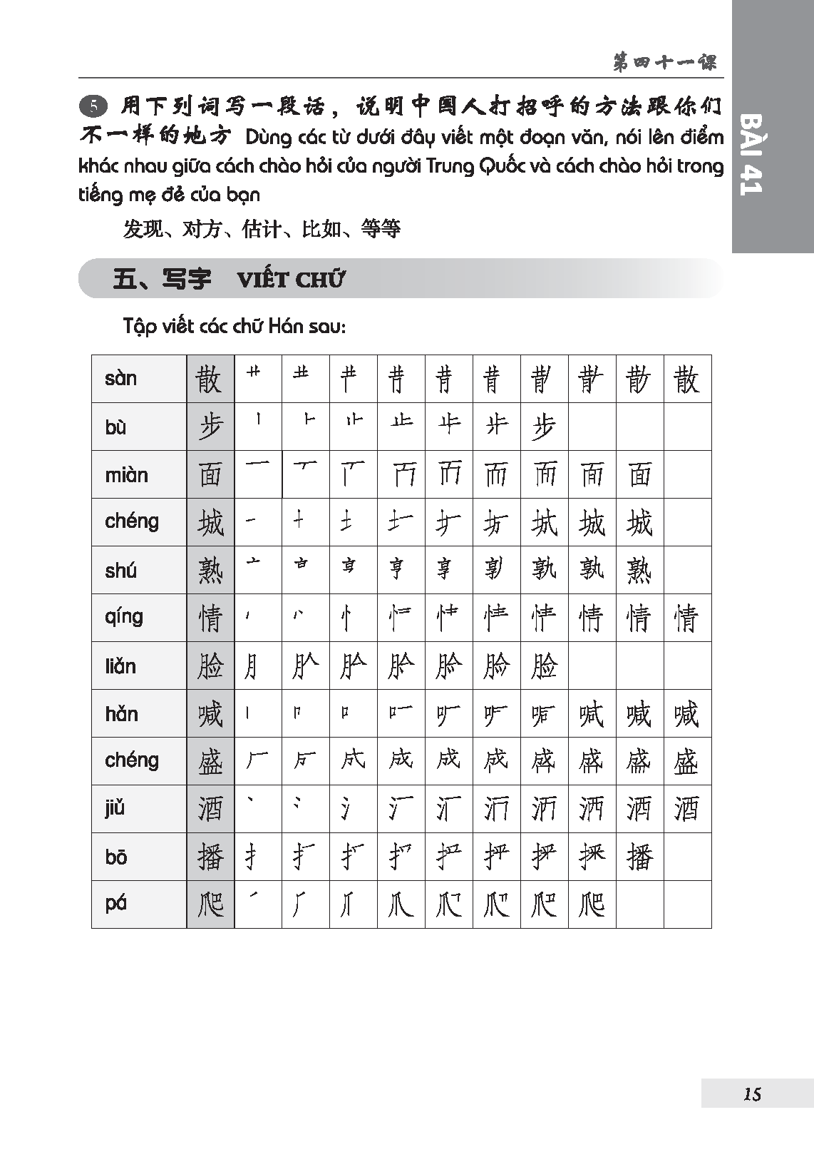 Giáo trình tiếng Trung Giao tiếp tổng hợp dành cho người Việt Nam Cuốn sách Giáo Trình Tiếng Trung Giao Tiếp Tổng Hợp Dành Cho Người Việt Nam có 15 bài, mỗi bài gồm:
