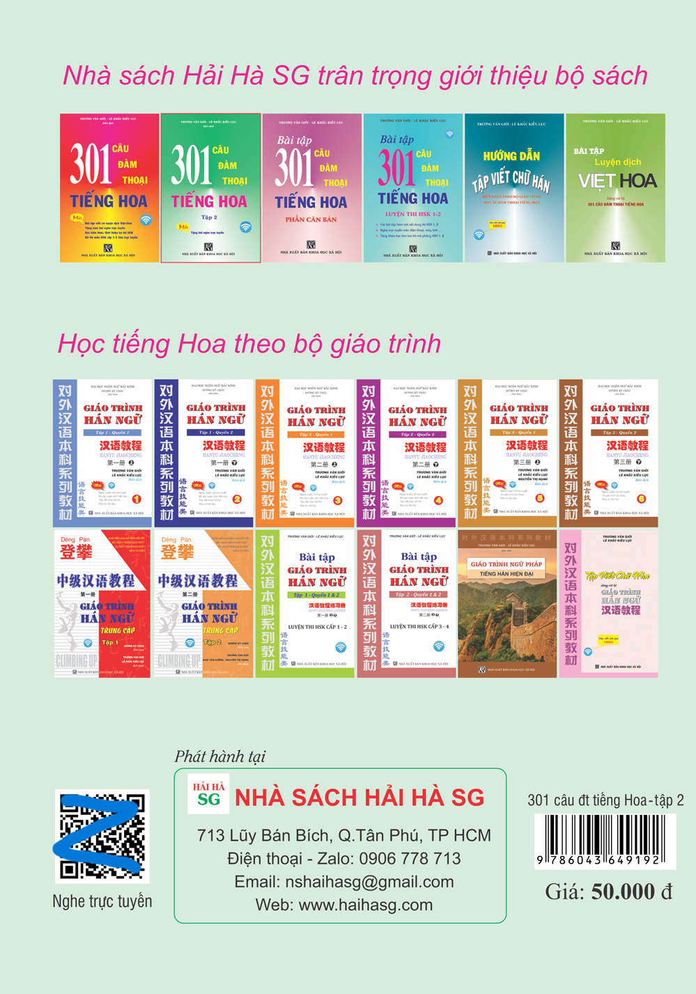 Xin trân trọng giới thiệu với bạn đọc cuốn “301 câu đàm thoại tiếng Hoa”, tập 2. Cùng với cuốn “301 câu đàm thoại tiếng Hoa”, bộ giáo trình này hiện được dùng làm tài liệu dạy và học tiếng Hoa giai đoạn cơ sở.