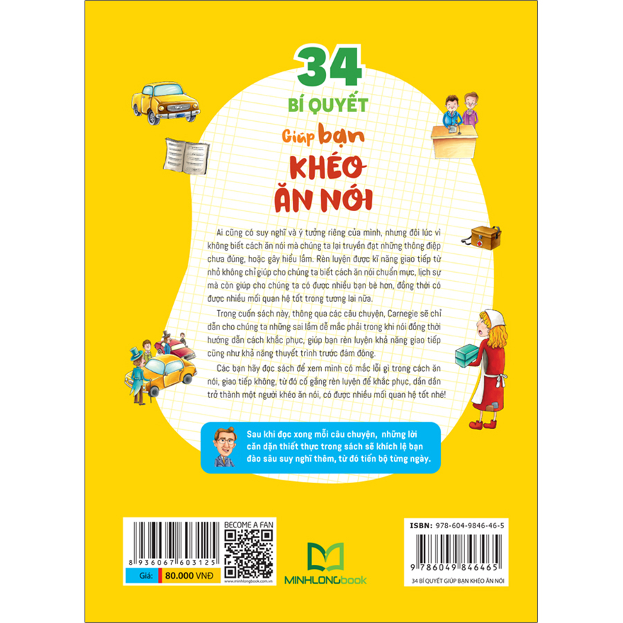 Ai cũng có suy nghĩ và ý tưởng riêng của mình, nhưng đôi lúc vì không biết cách ăn nói mà chúng ta lại truyền đạt những thông điệp chưa đúng, hoặc gây hiểu lầm. Rèn luyện được kĩ năng giao tiếp từ nhỏ không chỉ giúp cho chúng ta biết cách ăn nói chuẩn mực, lịch sự mà còn giúp cho chúng ta có được nhiều bạn bè hơn, đồng thời có được nhiều mối quan hệ tốt trong tương lai nữa Trong cuốn sách này, thông qua các câu chuyện, Carnegie sẽ chỉ dẫn cho chúng ta những sai lầm dễ mắc phải trong khi nói đồng thời hướng dẫn cách khắc phục, giúp bạn rèn luyện khả năng giao tiếp cũng như khả năng thuyết trình trước đám đông.