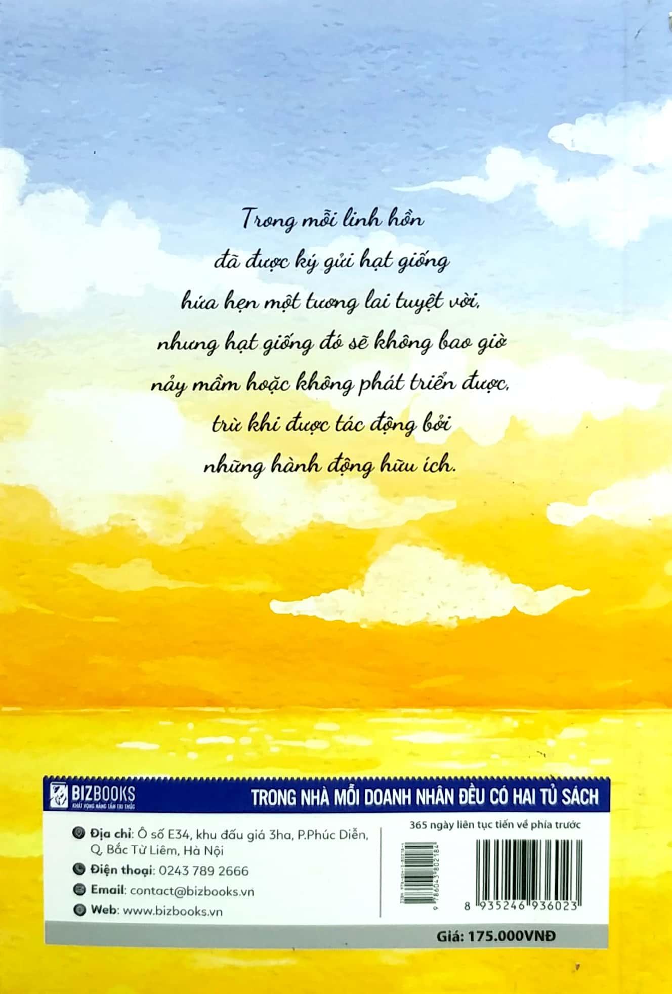 Mỗi ngày chúng ta tiến bộ một chút chính là 1 + 0,01; còn mỗi ngày giật lùi một chút sẽ là 1 – 0,01. Nếu tính tích luỹ qua từng ngày thì cách biệt giữa “tiến bộ một chút” và “giật lùi một chút” sau một năm là hơn 1000 lần. Vì vậy, đừng bao giờ nói những câu như không thể tiếp tục kiên trì được nữa hay là cảm thấy mọi thứ mình làm thật vô ích trong quá trình nỗ lực của bạn, bởi khi đó, hẳn là bạn chưa đi tới tận cùng mà thôi.