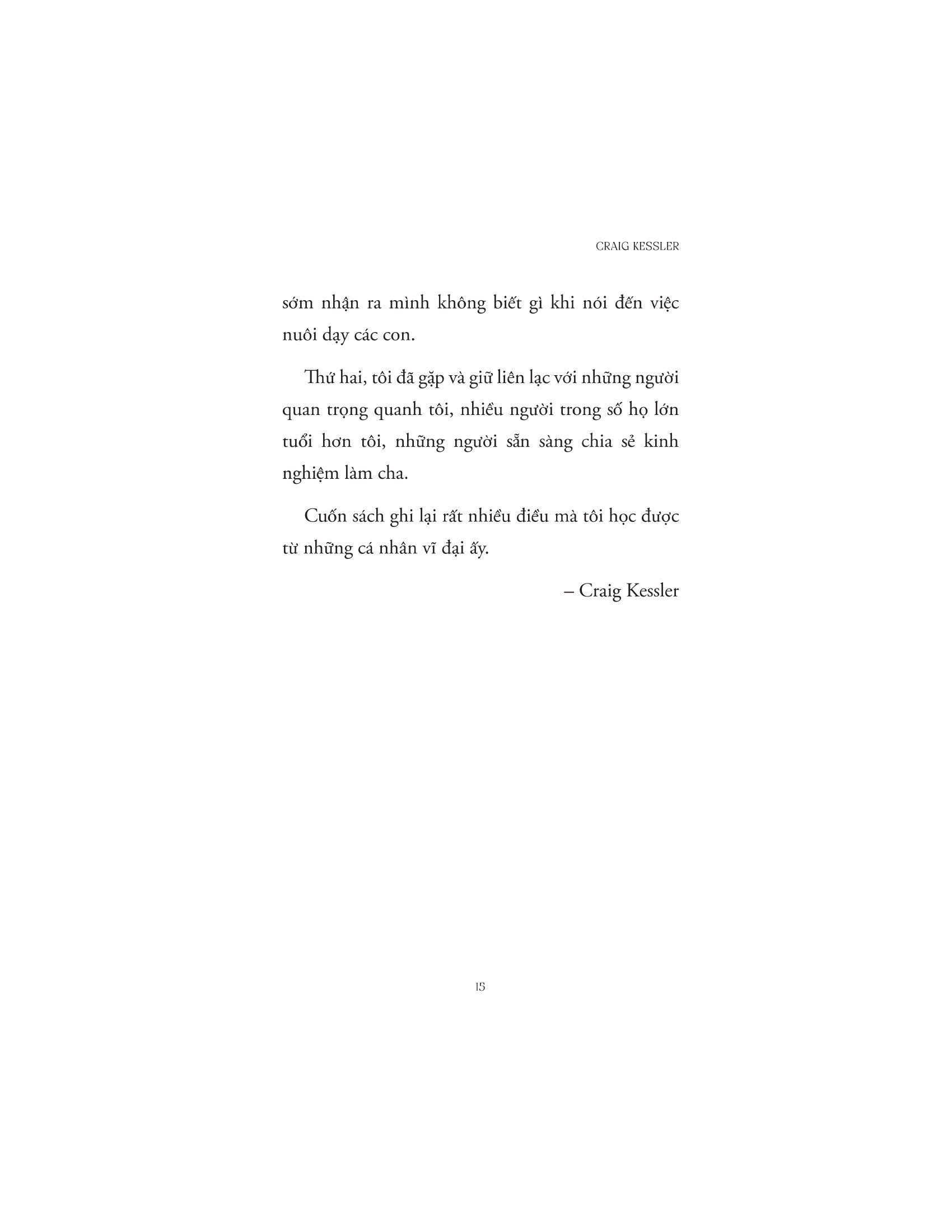 Khi đang tìm kiếm lời khuyên về cách nuôi dạy con cái, tác giả Craig Kessler đã nhờ một số người bạn viết cho m.ình một bức thư với chủ đề “cách trở thành một người cha tốt”. Những bức thư sau đó mà anh nhận được đã truyền cảm hứng cho anh viết nên cuốn sách tuyệt vời này.