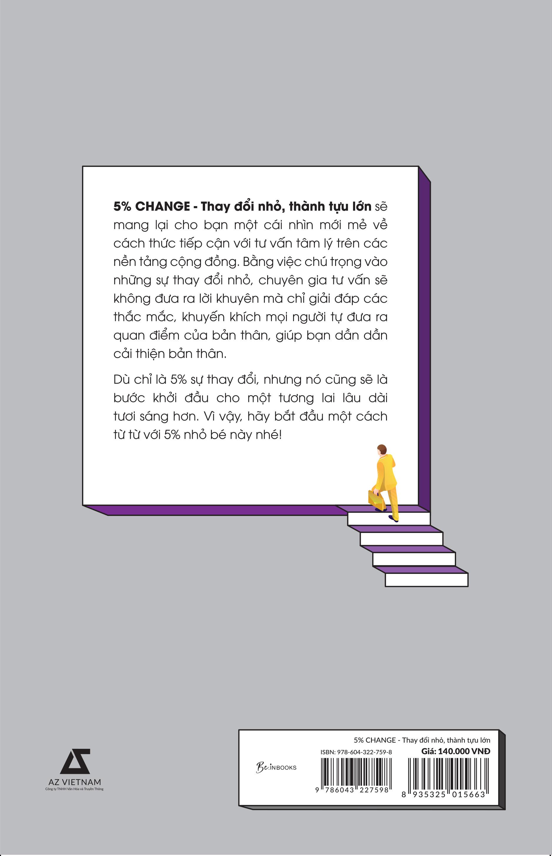 5% Change - Thay Đổi Nhỏ, Thành Tựu Lớn 5% CHANGE - THAY ĐỔI NHỎ, THÀNH TỰU LỚN: “HƯỚNG DẪN TỰ TRỢ GIÚP” HỮU ÍCH CHO NHỮNG AI CÓ KHÚC MẮC TÂM LÝ CẦN ĐƯỢC GIẢI QUYẾT