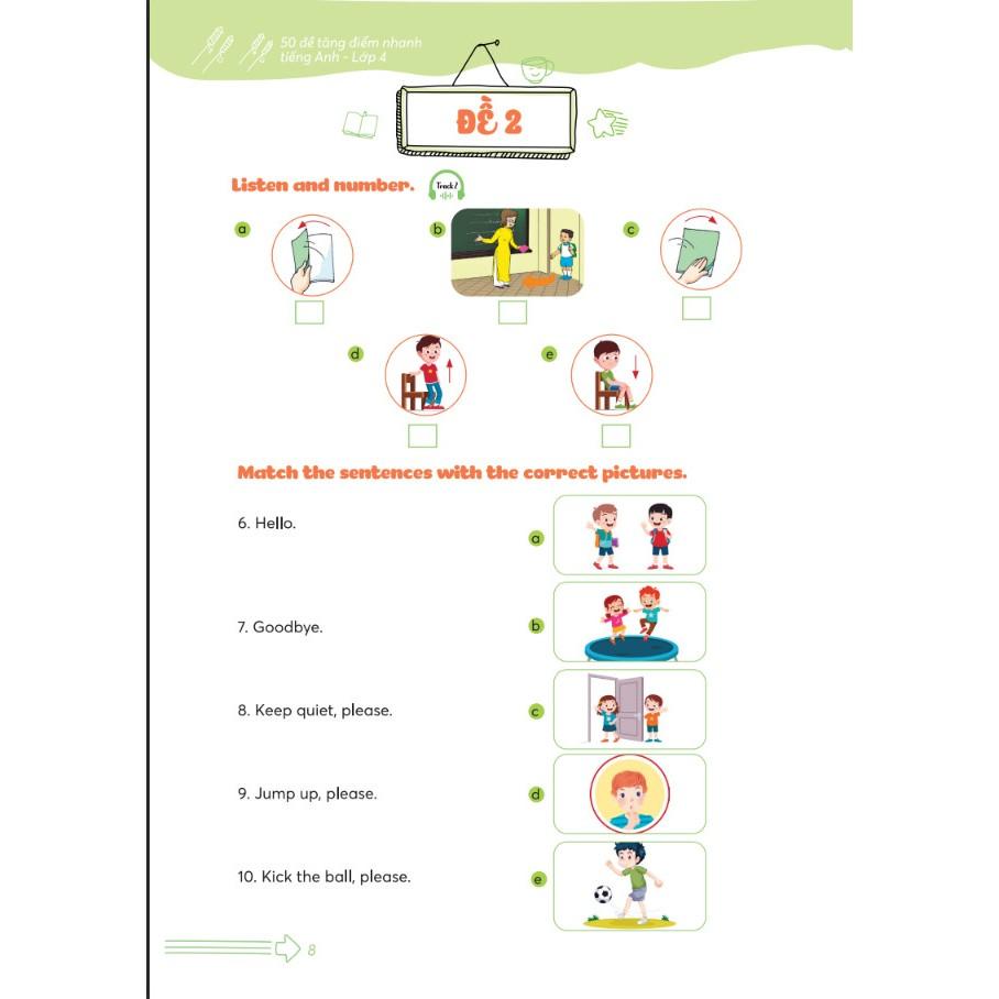 Cuốn sách 50 Đề Tăng Nhanh Điểm Tiếng Anh Lớp 4 sẽ giúp các em vững vàng thêm nền tảng kiến thức để tăng điểm vào cuối mỗi kì.