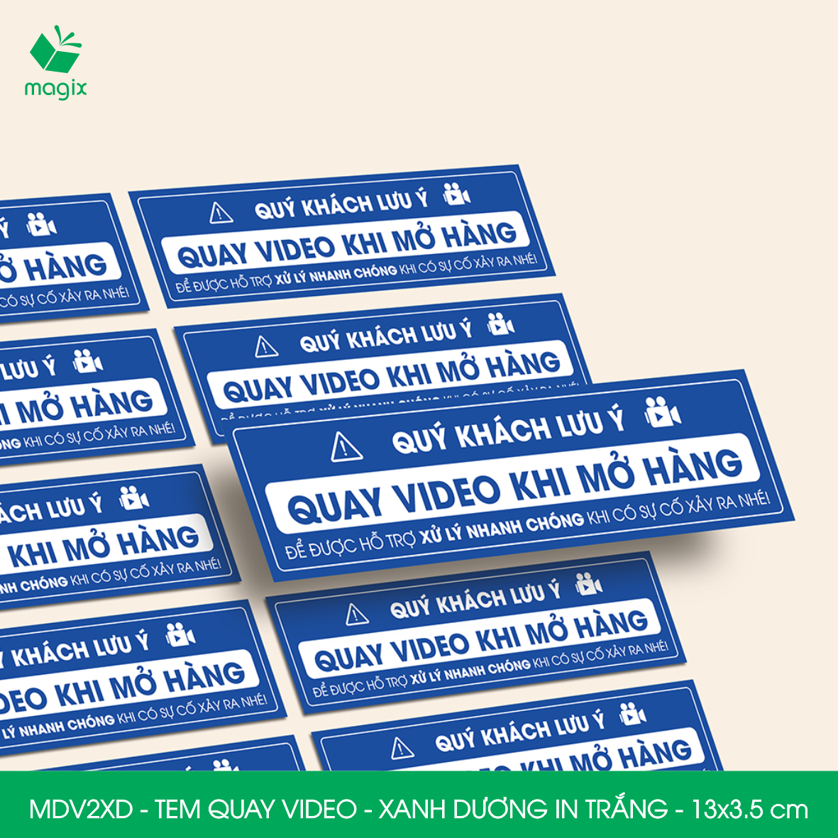 ✨50 Tem chú ý quay video trước khi mở hàng, decal dán hộp - 13x3,5 cm - Xanh dương in trắng - MDV2XD