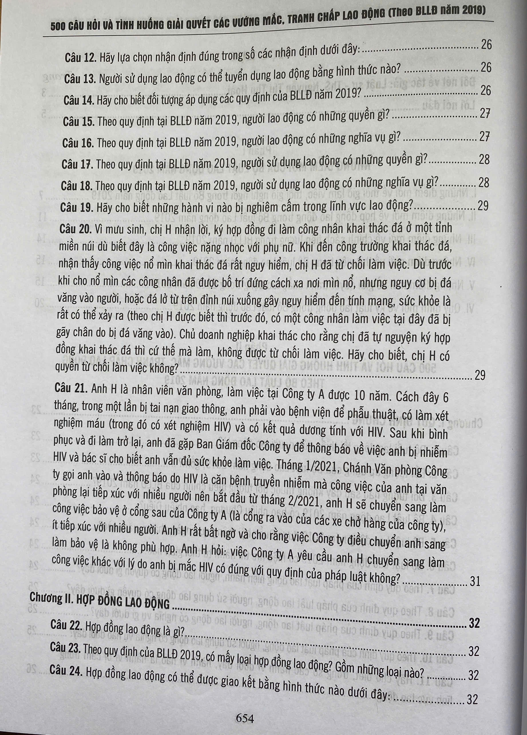 Phần II - 500 câu hỏi và tình huống giải quyết các vướng mắc, tranh chấp lao động theo Bộ luật Lao động năm 2019.