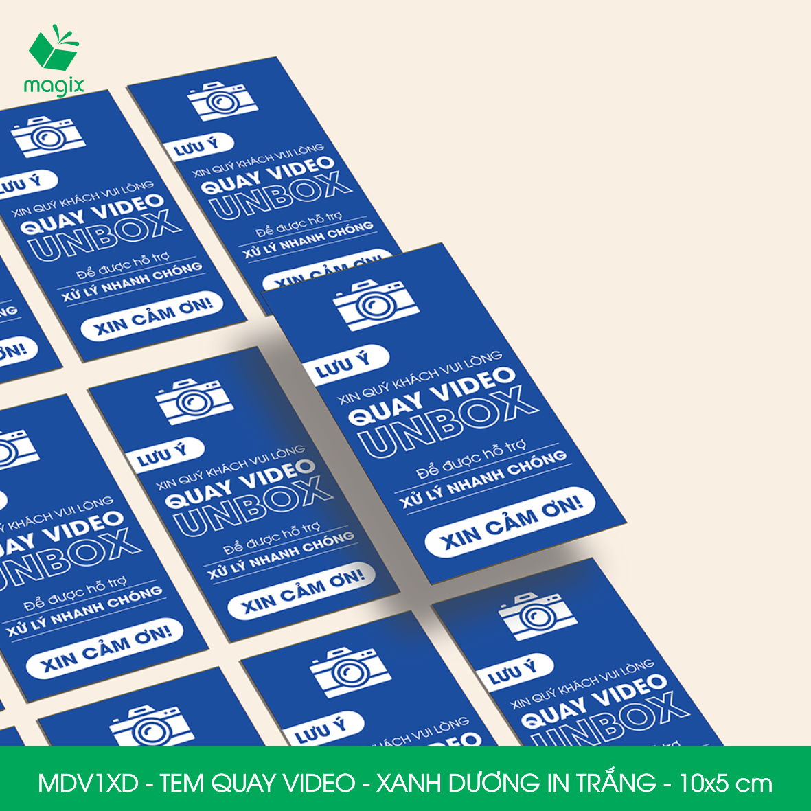 ✨500 Tem chú ý quay video trước khi mở hàng, decal dán hộp - 10x5 cm - Xanh dương in trắng - MDV1XD
