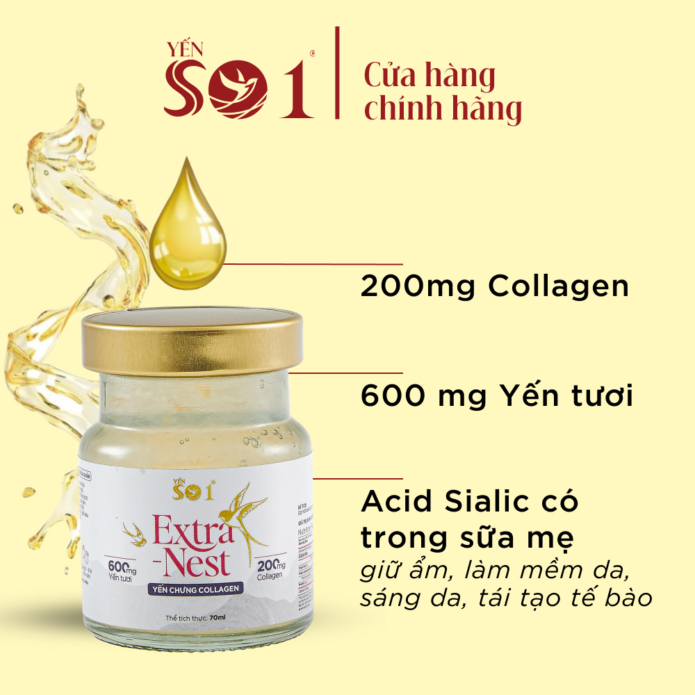 Yến Số 1 luôn dành nhiều yêu thương nhất cho phái đẹp, mỗi hũ yến bổ sung thêm hàm lượng Collagen cao giúp cơ thể, làn da của bạn được tái tạo tế bào nhanh chóng, đưa bạn về cuộc đua nhan sắc tuổi 20.