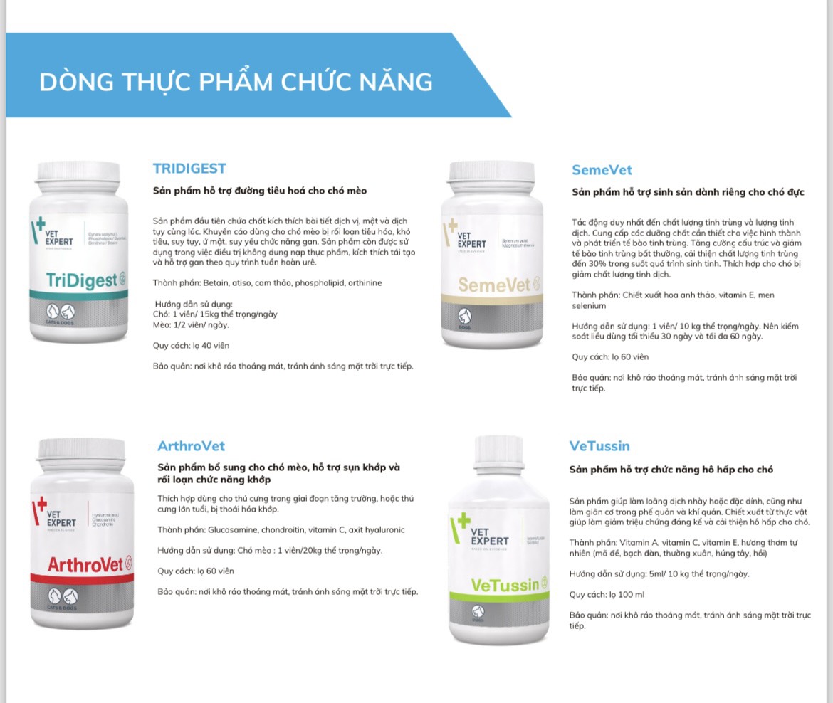 * Bổ sung vitamin tổng hợp, acid amin, khoáng chất thiết yếu và các vi sinh vật có lợi cho đường ruột chó mèo. * Hỗ trợ các bệnh về xương khớp (khớp bị đau,