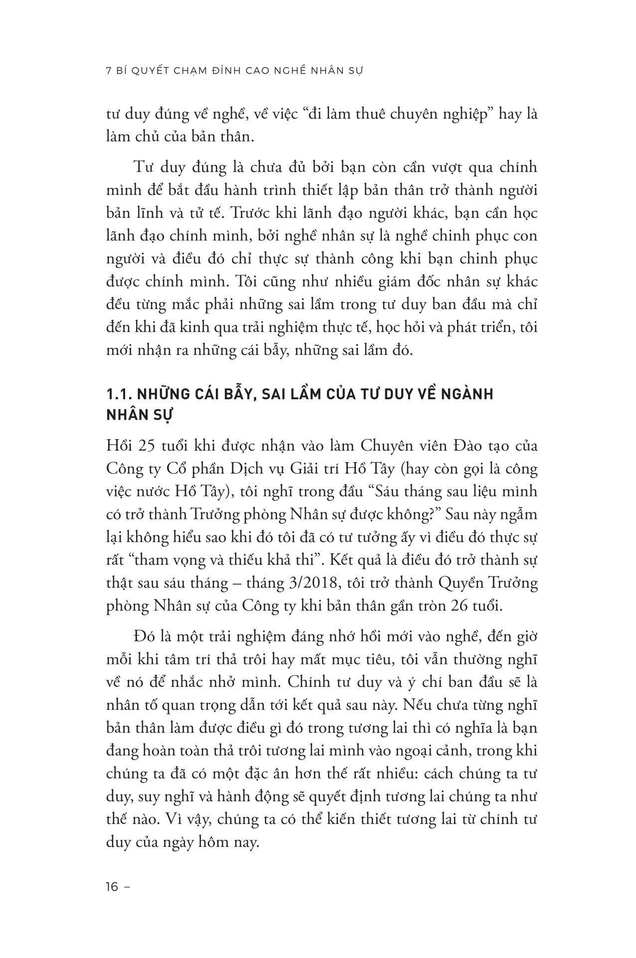 Cuốn sách được viết với sự say mê, nhiệt tình, nhằm mong muốn có thể truyền đi tinh thần làm nghề, giúp độc giả có những hình dung về lộ trình phát triển của nghề nhân sự, và từng bước “chạm” đến hành trình phát triển của cá nhân.