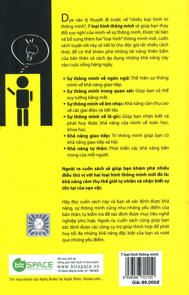 7 Loại Hình Thông Minh (Tái Bản 2012) Nếu câu hỏi "Bạn thông minh như thế nào?" được đặt ra thì nhiều khả năng, câu trả lời của bạn trong tình huống này chỉ tập trung dựa vào kết quả các bài kiểm tra...