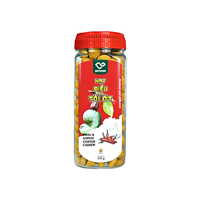 HẠT ĐIỀU VỊ TỎI ỚT - DGFOODS/ Chili & garlic coated cashew THÀNH PHẦN/ INGREDIENTS: Hạt điều (57%), bột mì, bột gạo nếp, tinh bột sắn, đường, tỏi (1%), ớt (1%), muối, dầu thực vật.