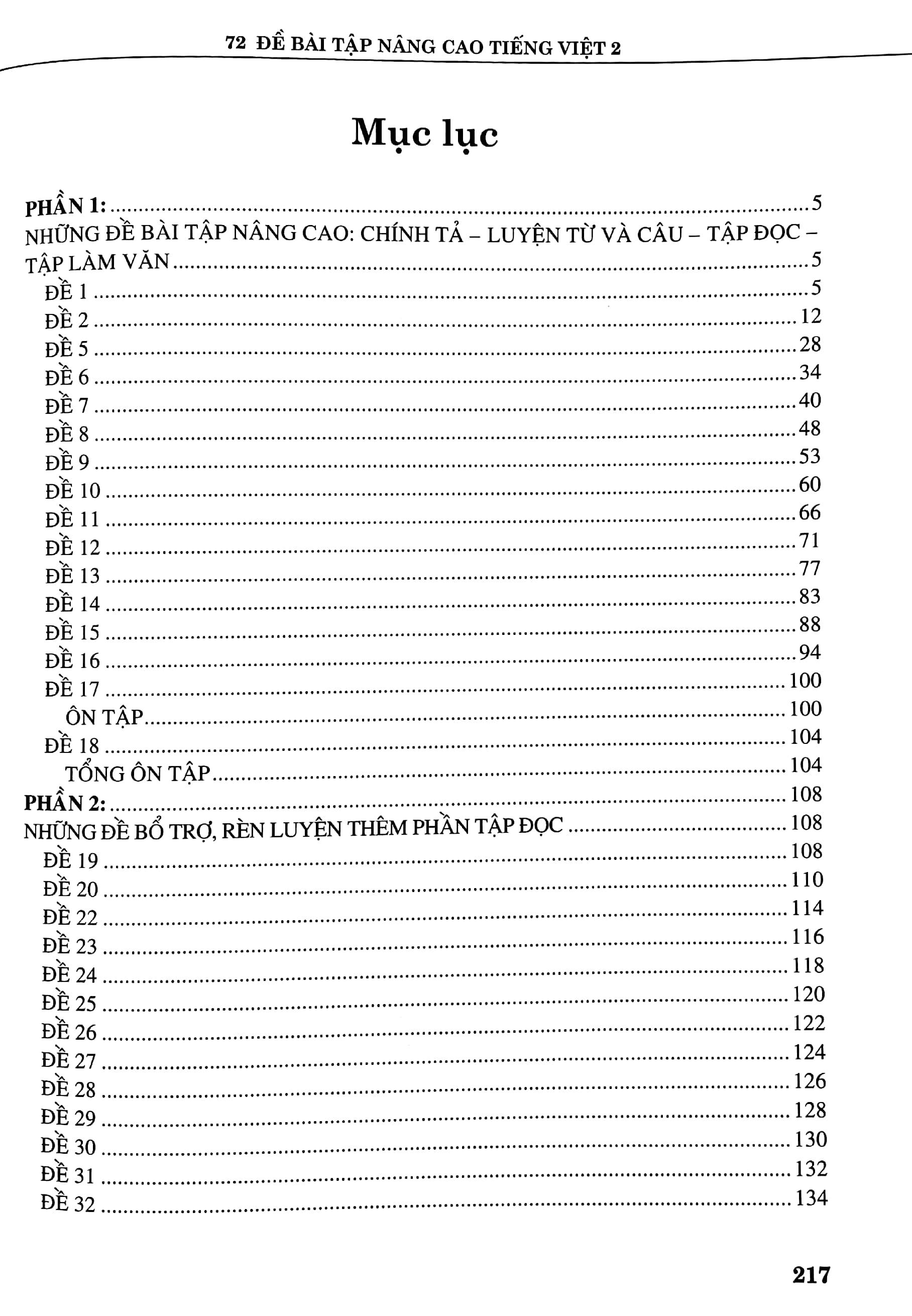 72 Đề Bài Tập Nâng Cao Tiếng Việt Lớp 2