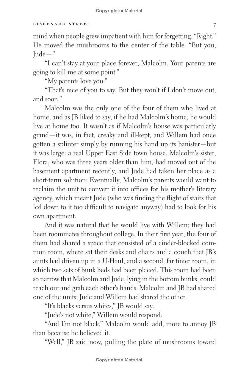 ONE OF THE BEST BOOKS OF THE YEAR "The New York Times" "The Washington Post" "The Wall Street Journal" NPR "Vanity Fair" "Vogue" "Minneapolis Star Tribune" "St. Louis Post-Dispatch" "The Guardian " "O, The Oprah Magazine" Slate "Newsday" Buzzfeed "The Economist" " Newsweek" "People" " Kansas City Star" Shelf Awareness "Time Out New York " " Huffington Post" Book Riot Refinery29 "Bookpage" "Publishers Weekly Kirkus" WINNER OF THE KIRKUS PRIZE A MAN BOOKER PRIZE FINALIST A NATIONAL BOOK AWARD FINALIST "A Little Life" follows four college classmates broke, adrift, and buoyed only by their friendship and ambition as they move to New York in search of fame and fortune. While their relationships, which are tinged by addiction, success, and pride, deepen over the decades, the men are held together by their devotion to the brilliant, enigmatic Jude, a man scarred by an unspeakable childhood trauma. A hymn to brotherly bonds and a masterful depiction of love in the twenty-first century, Hanya Yanagihara s stunning novel is about the families we are born into, and those that we make for ourselves."