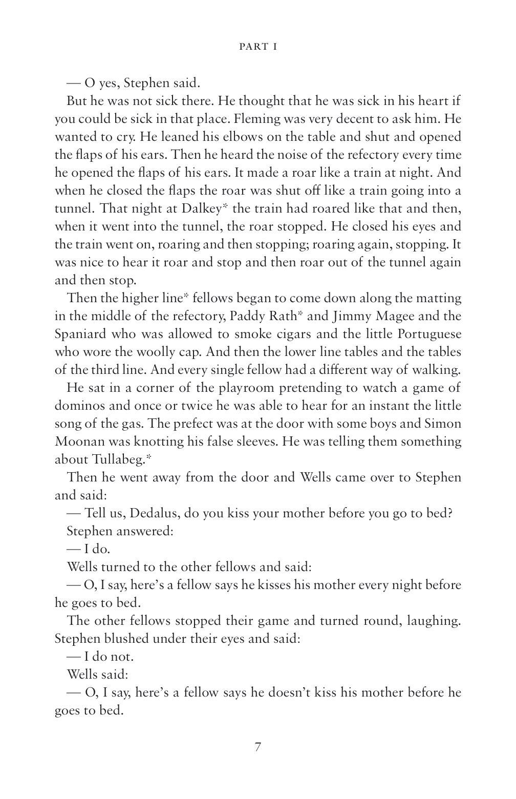 James Joyce's first novel, A Portrait of the Artist as a Young Man is a Ku¨nstlerroman which chronicles the emotional and intellectual development of Stephen Dedalus – a character partly based on the author himself – from his early childhood and his school and university days all the way to his first forays as a young artist. Dedalus's thoughts and epiphanies reveal the tensions, insecurities and feelings of guilt that are the product of living in a country and period so deeply divided along religious and political lines.