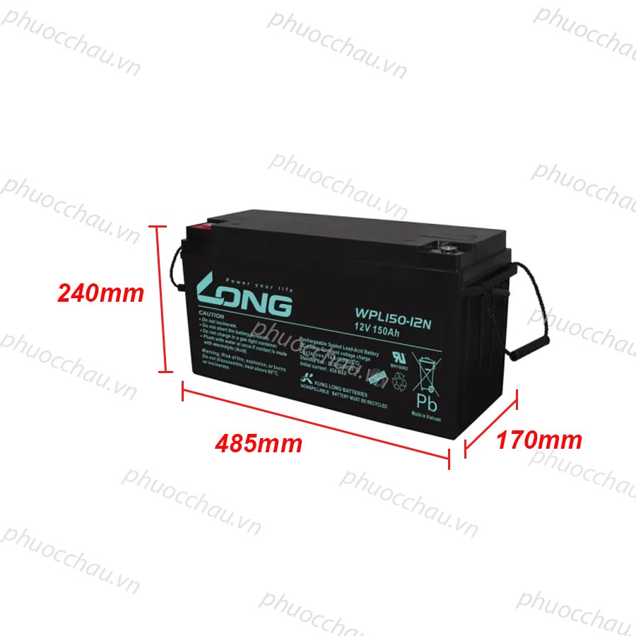 Ắc quy Long viễn thông Long 12V 150Ah, ắc quy xả sâu