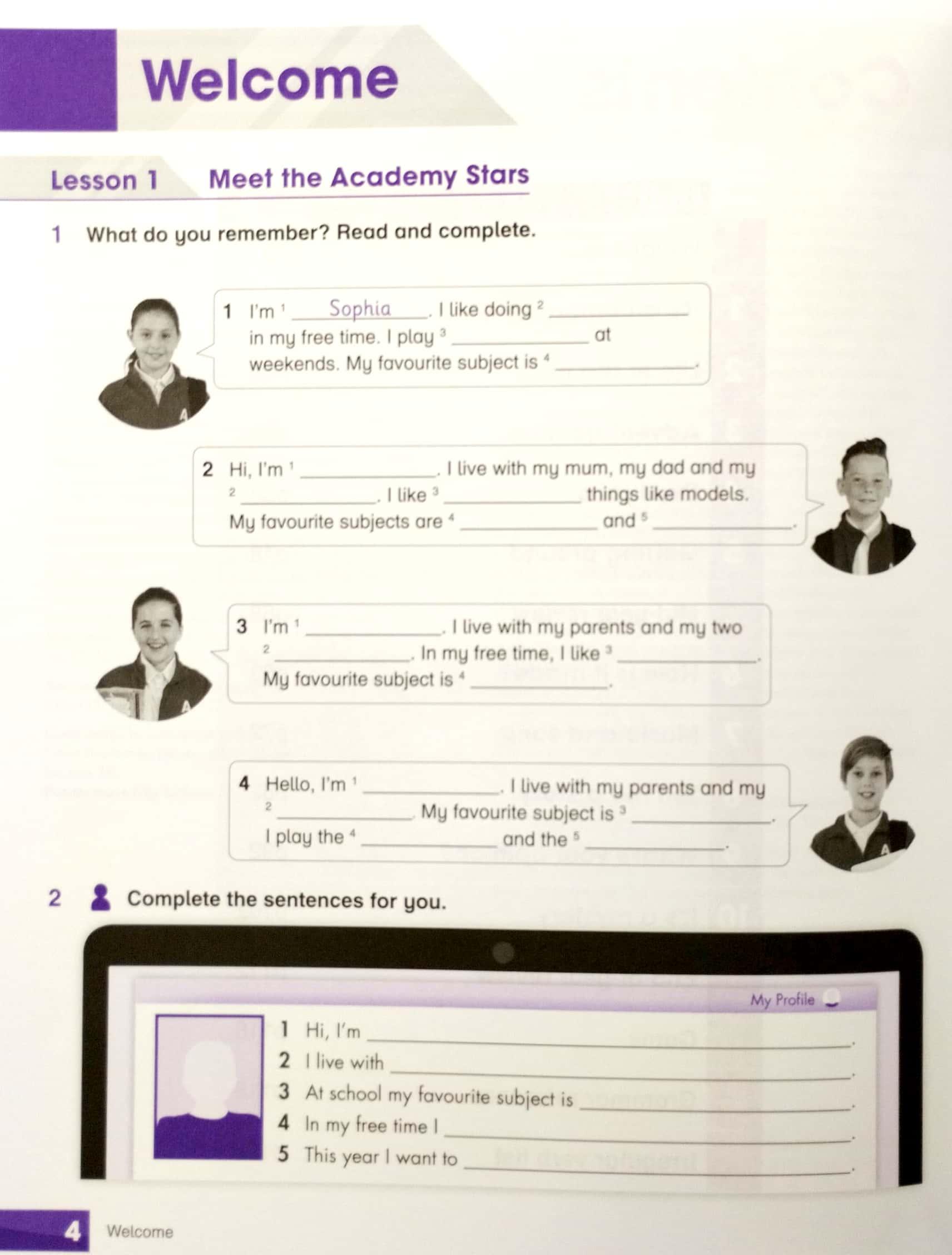 Workbook Year 6 Academy Stars Welcome Lesson 1 page 4 – 5 + answers