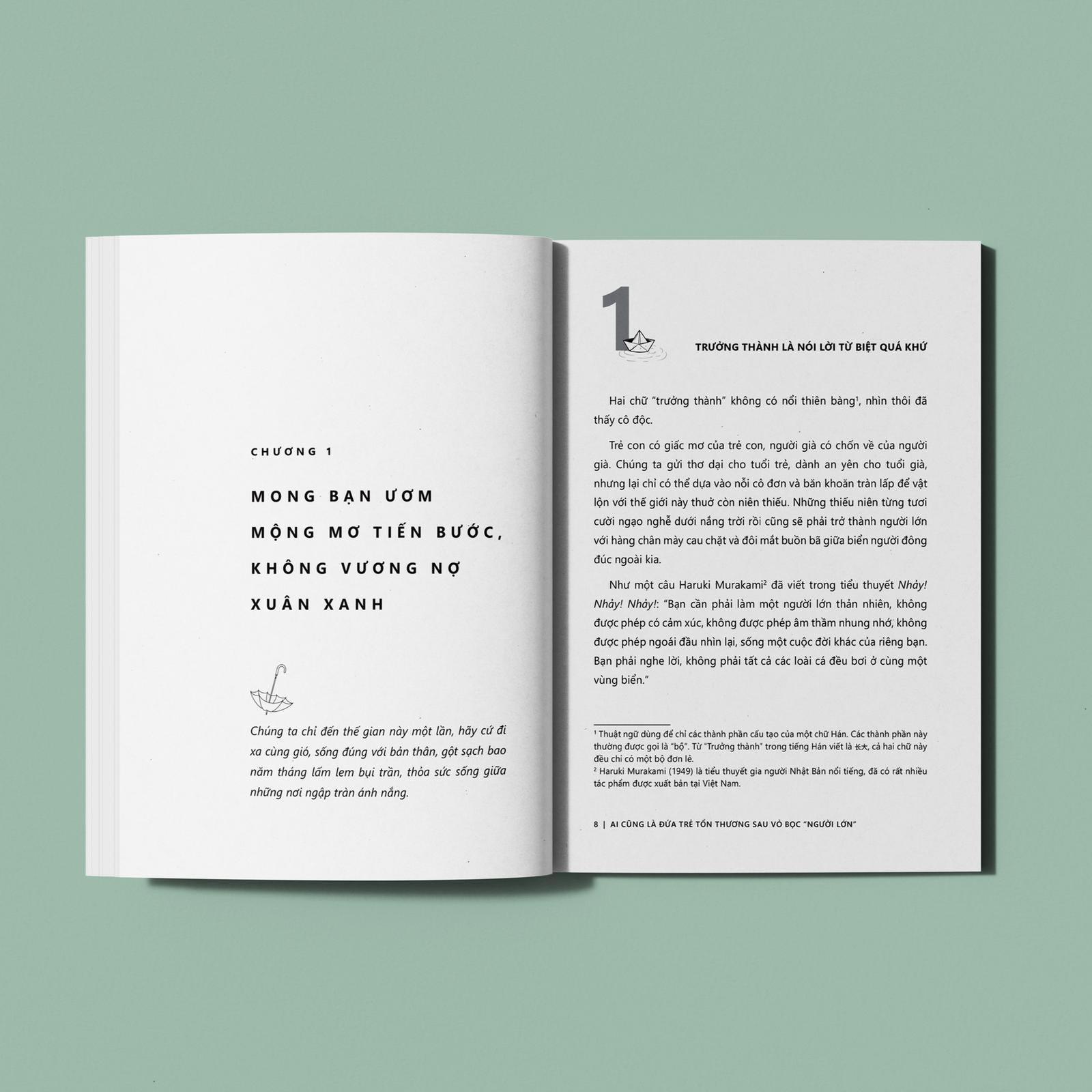Cuốn sách tổng hợp những câu chuyện của người trưởng thành và cảm xúc của tuổi trẻ từ các khía cạnh tình cảm gia đình, tình yêu, học tập, thái độ sống, hình thành tính cách,... để người đọc có cảm giác như chính mình đang nhìn lại chặng đường đã đi và quyết tâm tiến về phía trước.