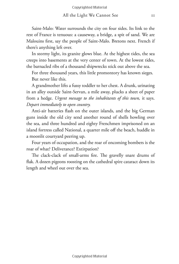 From the highly acclaimed, multiple award-winning Anthony Doerr, the stunningly beautiful instant New York Times bestseller about a blind French girl and a German boy whose paths collide in occupied France as both try to survive the devastation of World War II. Marie-Laure lives in Paris near the Museum of Natural History, where her father works. When she is twelve, the Nazis occupy Paris and father and daughter flee to the walled citadel of Saint-Malo, where Marie-Laure's reclusive great uncle lives in a tall house by the sea. With them they carry what might be the museum's most valuable and dangerous jewel. In a mining town in Germany, Werner Pfennig, an orphan, grows up with his younger sister, enchanted by a crude radio they find that brings them news and stories from places they have never seen or imagined. Werner becomes an expert at building and fixing these crucial new instruments and is enlisted to use his talent to track down the resistance. Deftly interweaving the lives of Marie-Laure and Werner, Doerr illuminates the ways, against all odds, people try to be good to one another. Doerr's "stunning sense of physical detail and gorgeous metaphors" (San Francisco Chronicle) are dazzling. Ten years in the writing, a National Book Award finalist, All the Light We Cannot See is a magnificent, deeply moving novel from a writer "whose sentences never fail to thrill" (Los Angeles Times).