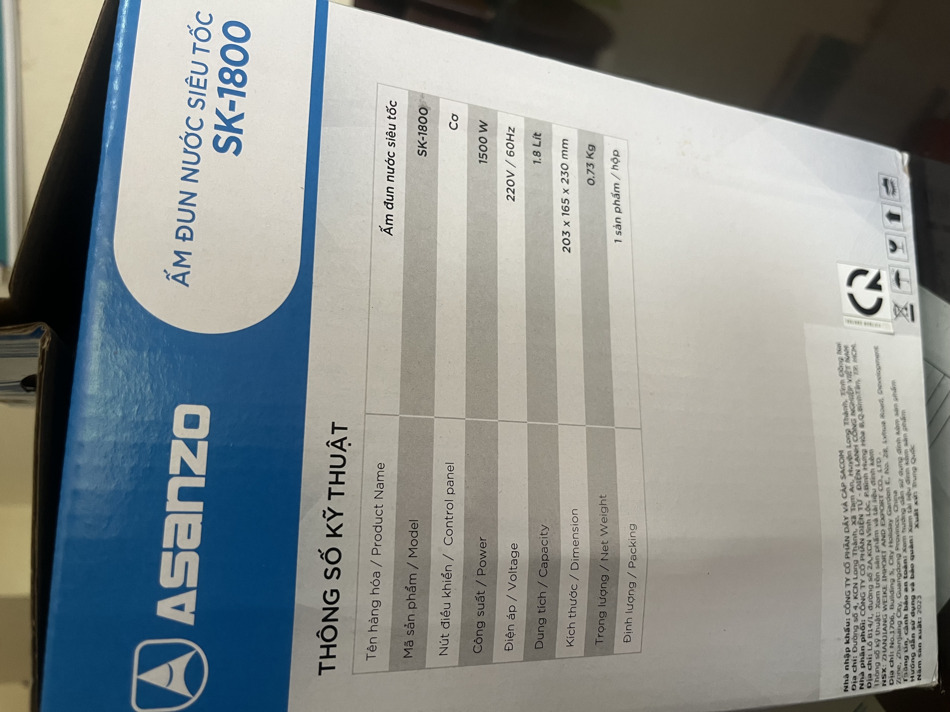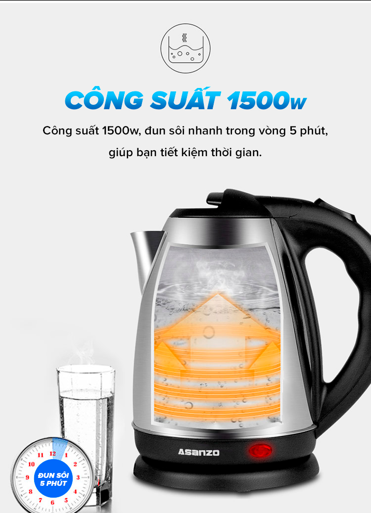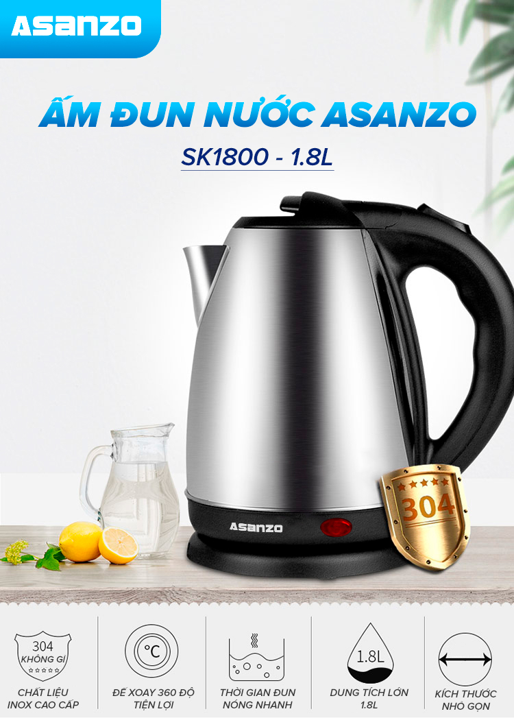 Ấm siêu tốc Asanzo 1.8L Model SK1800 - AsanzoHanoi.com