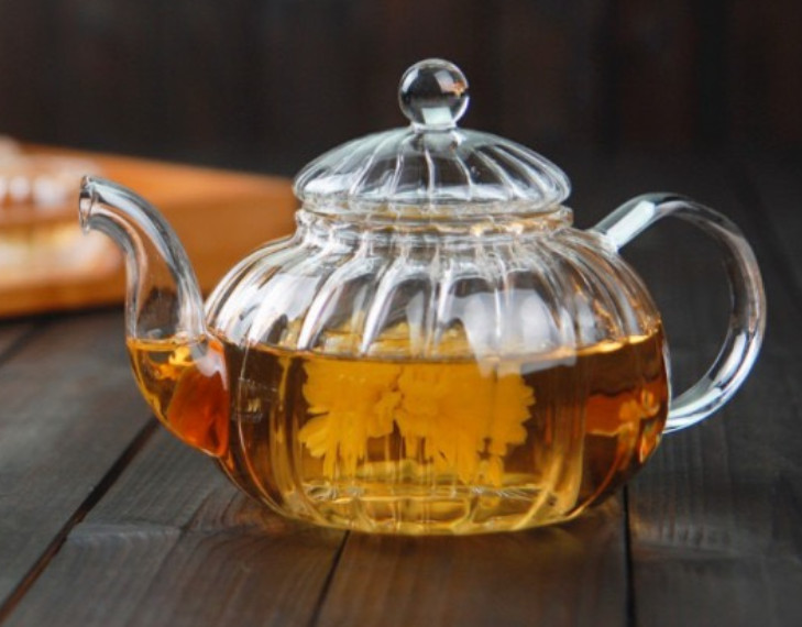 Ấm trà thủy tinh HOA CÚC có thiết kế dáng quả bí ngô, có lõi lọc thủy tinh để giữ lại bã trà, dễ dàng sử dụng. Thường dùng pha trà hoa, trà thảo mộc hoặc một số loại trà khác.