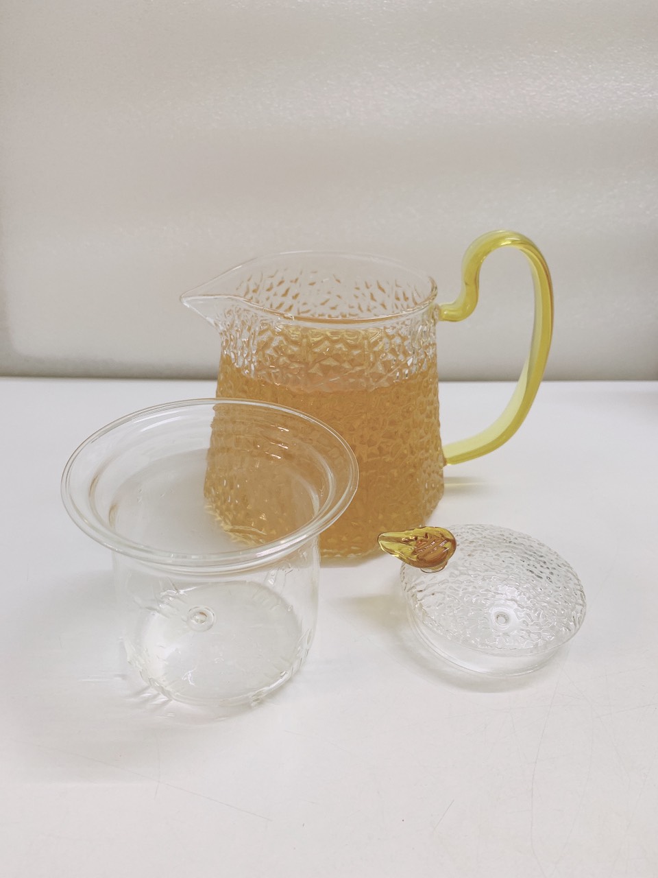 ẤM TRÀ THỦY TINH CÓ LÕI LỌC CHỊU NHIỆT NHIỆT CAO CẤP VÂN NHÁM QUAI VÀNG CRYSTAN 500ml