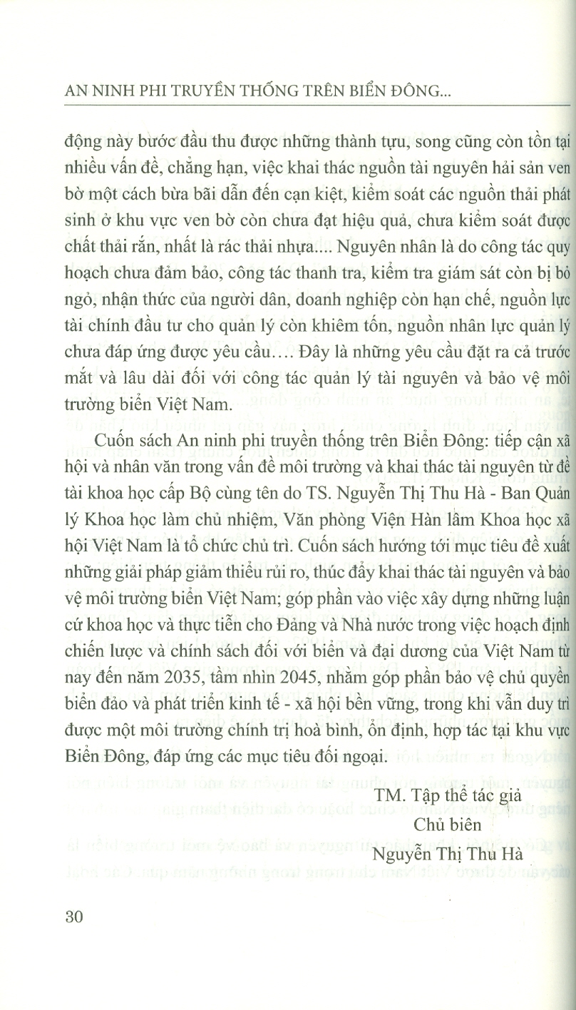 ✨An Ninh Phi Truyền Thống Trên Biển Đông: Tiếp Cận Khoa Học Xã Hội Và Nhân Văn Trong Vấn Đề Môi Trường Và Khai Thác Tài Nguyên (Sách chuyên khảo)