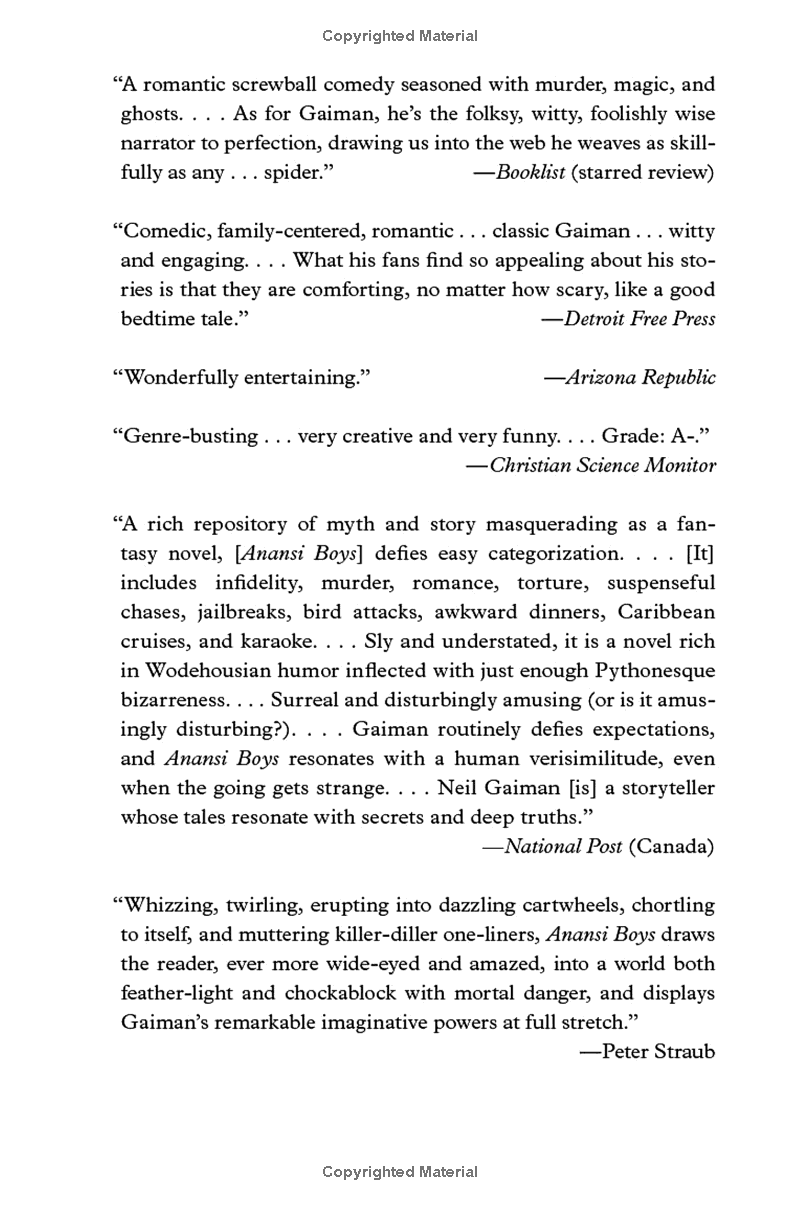 Neil Gaiman journeys deep into myth to brings us a tale playful, profound, and rife with mayhem and mischief—an audacious and inspired story of family, luck, deceit, and an unusual legacy that illuminates the divine in our humanity. Not to mention a lime.