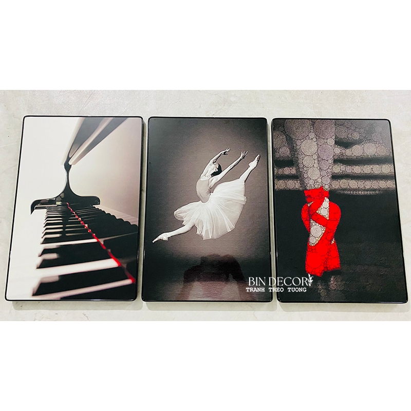 Tranh treo tường trang trí âm nhạc và múa ba lê - Kích thước của tranh : 25x35cmx3 tấm 30x45cmx3 tấm 40x60cmx3 tấm - Chất liệu : Tráng gương - Kim Sa - Khách hàng